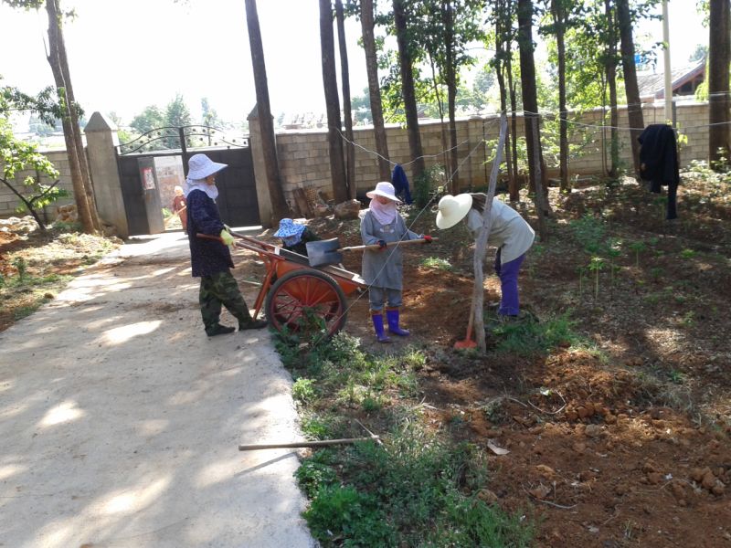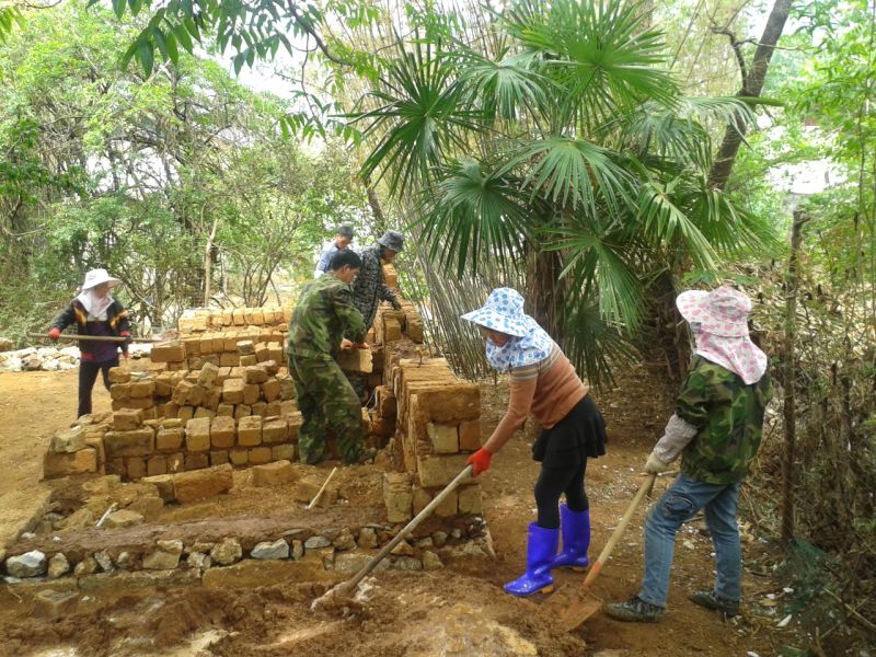 Images of the courtyard construction at the Empty Spirit Elegant Farmhouse Hotel