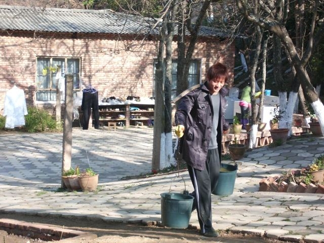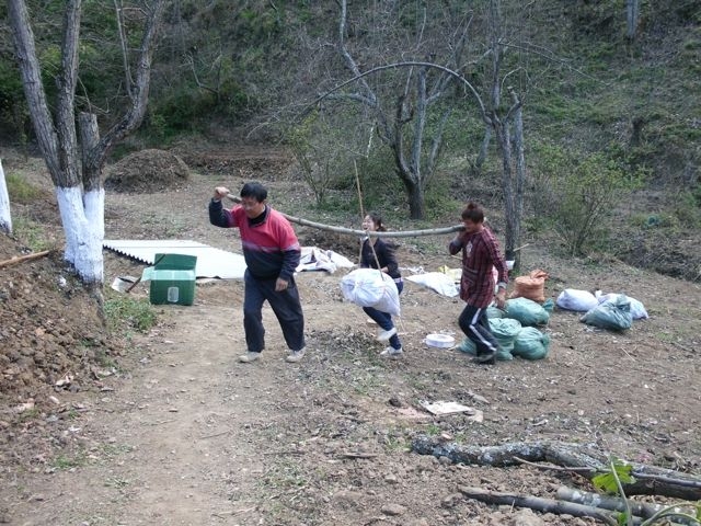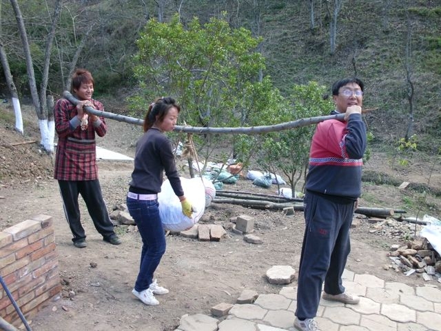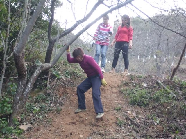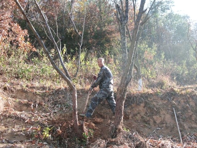 近日三分院加宽了从洗衣院通往菜地的一段小路,开始管理山上的果树,给每棵梨树刨个小窝施肥,慧光、大气仙子和识真神音仙女开始修剪梨枝,所以柴也开始多了,呵呵!