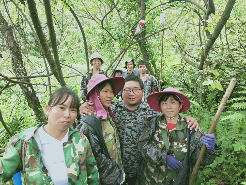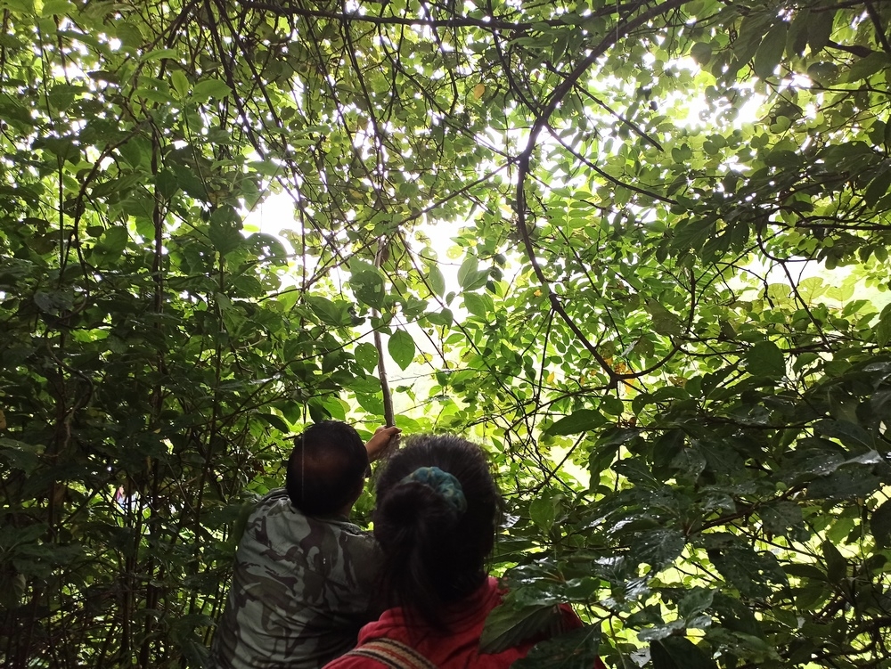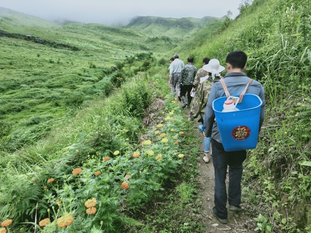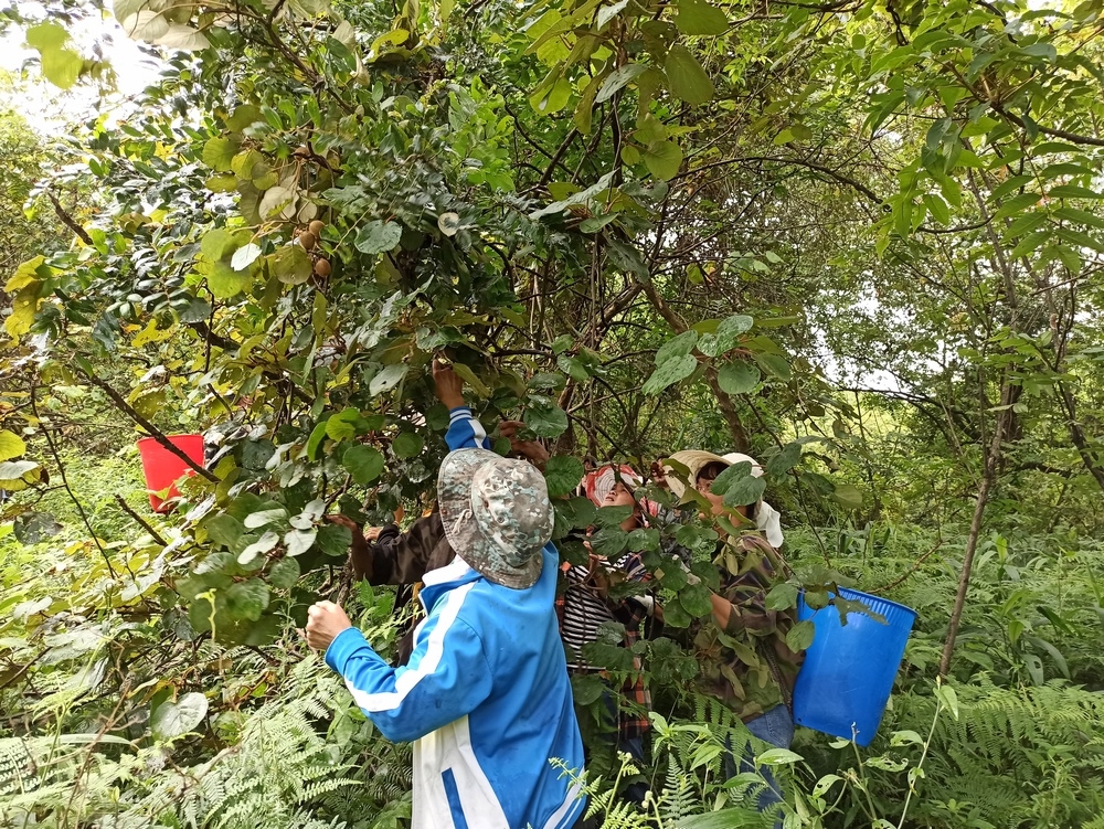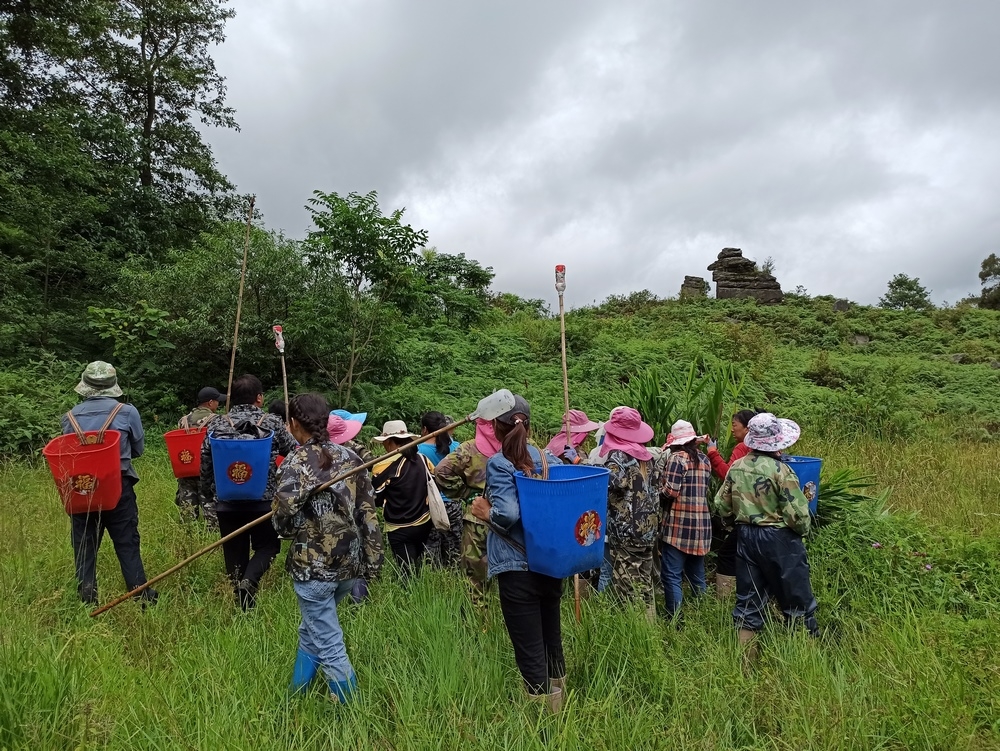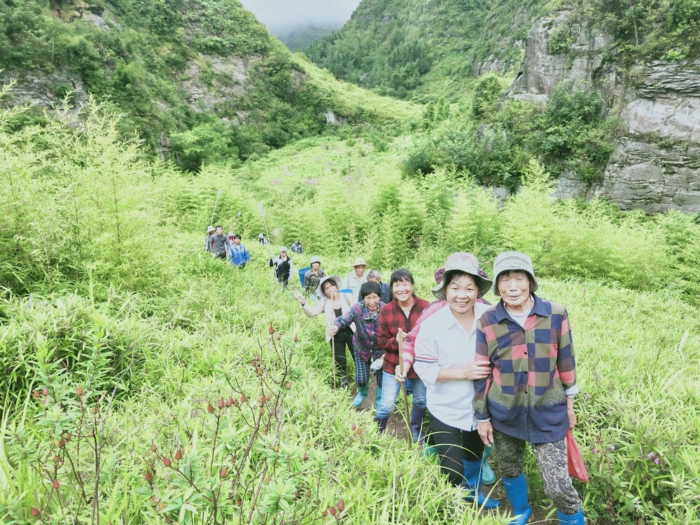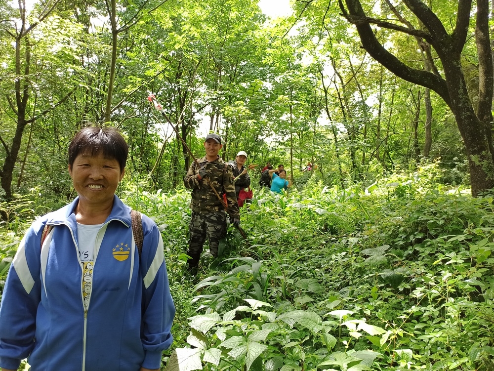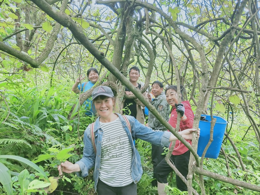 现在正是野生猕猴桃成熟的季节。总助拎着一壶二锅头拿着一双新步鞋,送到老王的家中并邀请他为我们带路,带我们走进大山深处,找寻猕猴桃树,采摘野猕猴桃。老王高兴地答应着,走在了我们一行人的最前方。这次采摘猕猴桃几乎全体人员都出动了,包括年长的亲人们,无论收获到的果实多或少,大家把这当成是一次集体的娱乐活动。