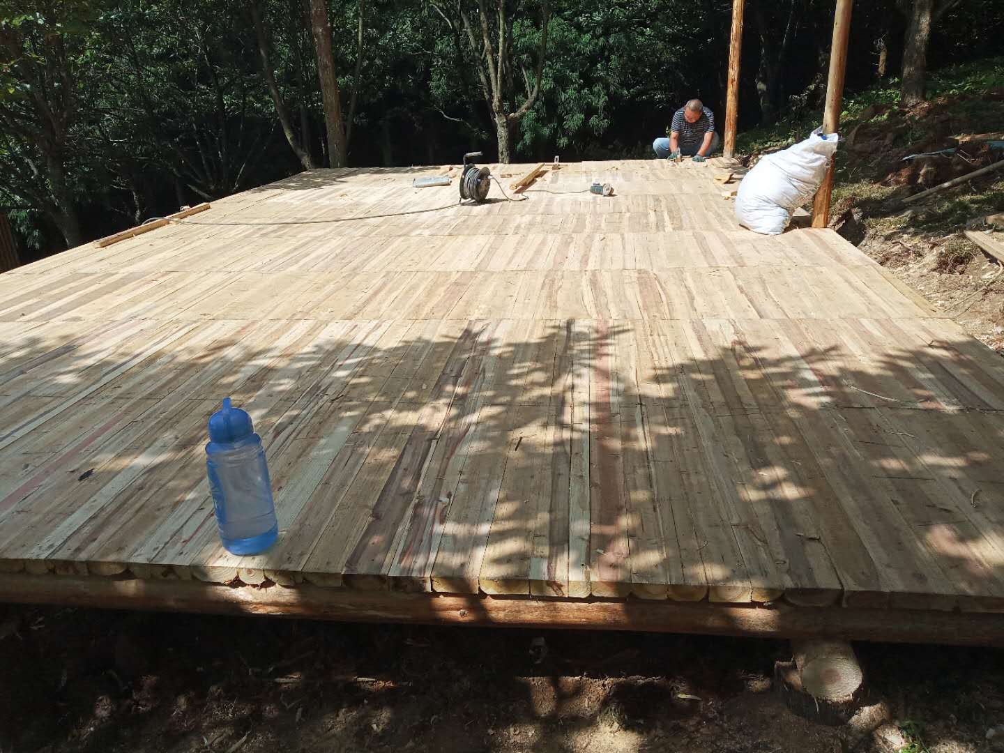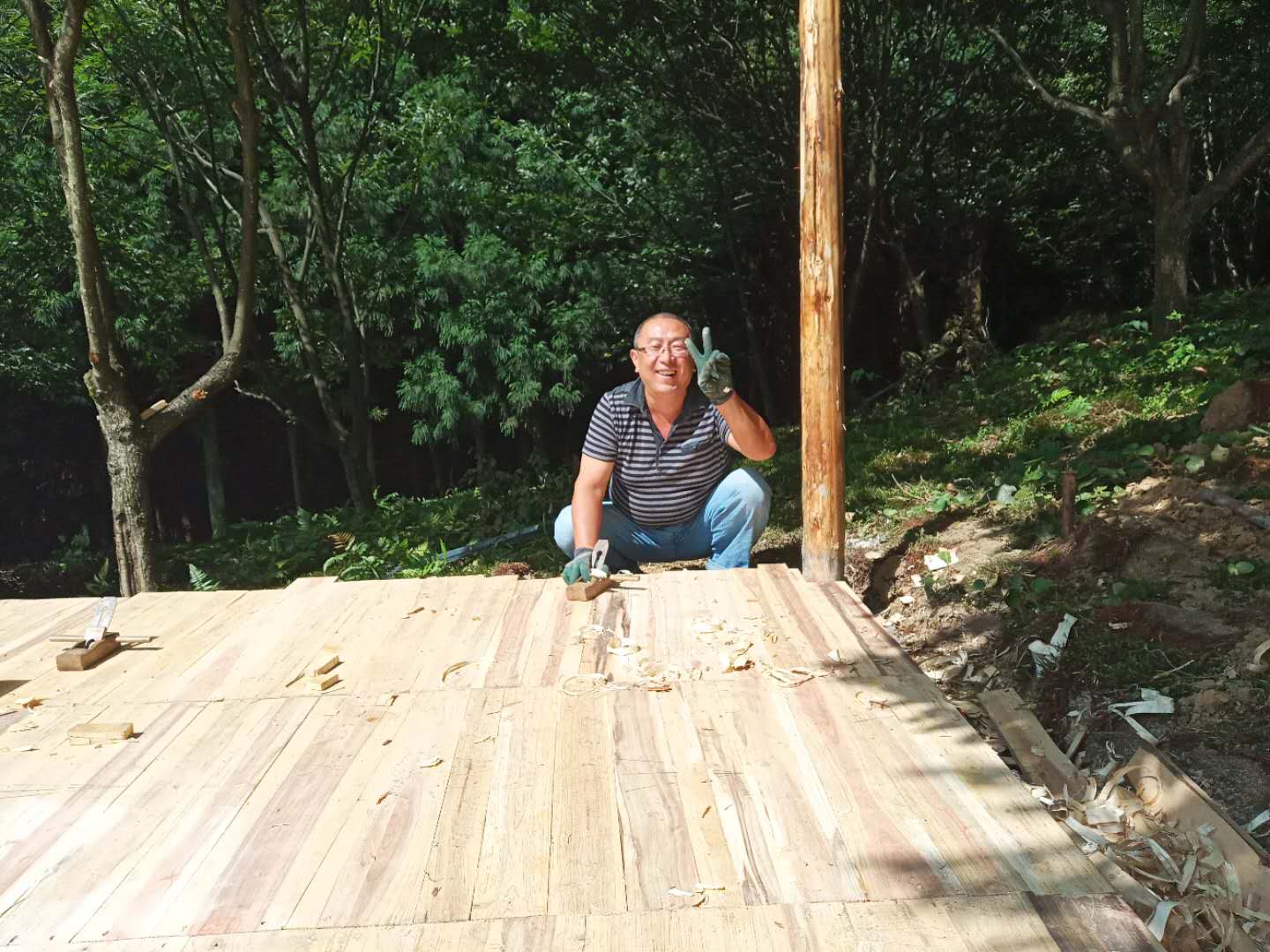 On August 22nd, I quietly returned to Immortal Charm. Why quietly? Well, I was afraid Danhui and Wanwan would be jealous! I took a few days off, plus the weekend, so I could stay for fifteen days. During the four months I was away, Immortal Charm underwent a lot of changes. Many flowers have bloomed, the houses are finished, and the construction of the pigsty and chicken coop is in full swing. Look at this big stage—this is the stage for the event on the 28th, but in reality, it’s the floor of the house. Before finishing the house, we made the stage first to make full use of the space.