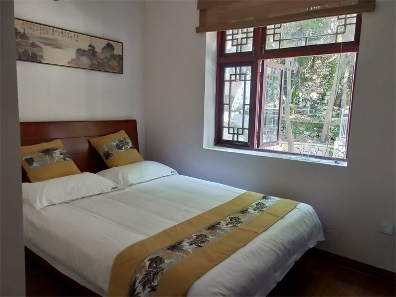 Please take a look at the guest rooms in the Youth Homeland. The pricing is as follows: Deluxe King Room is 180 yuan per night, Standard Twin Room is 120 yuan per night, and Regular King Room is 150 yuan per night. However, we rarely sell rooms at such high prices. When a group comes to stay, the price is usually negotiated at 100 yuan per room. If Celestials were to stay, would you like such a room? You can enjoy the natural mountain view outside the window, and listen to the birds singing and the sound of the flowing stream in the backyard.