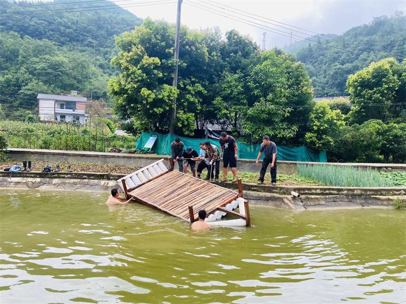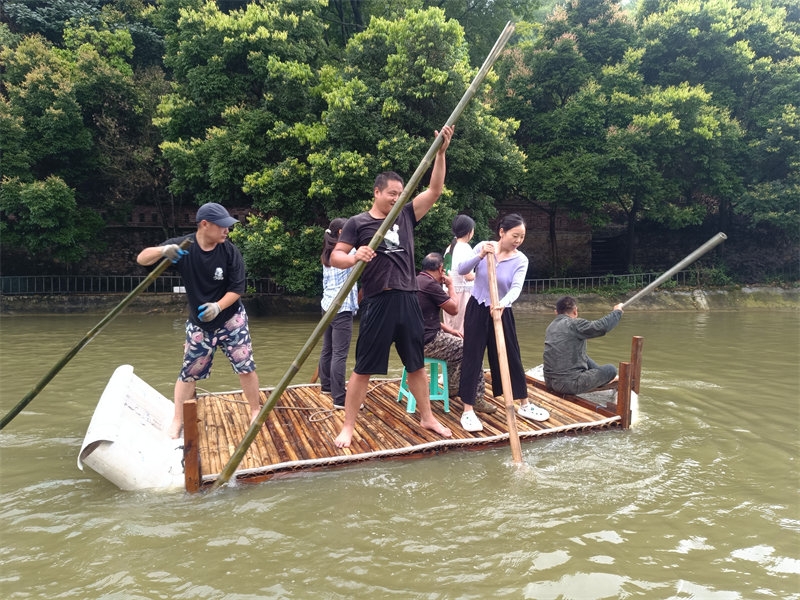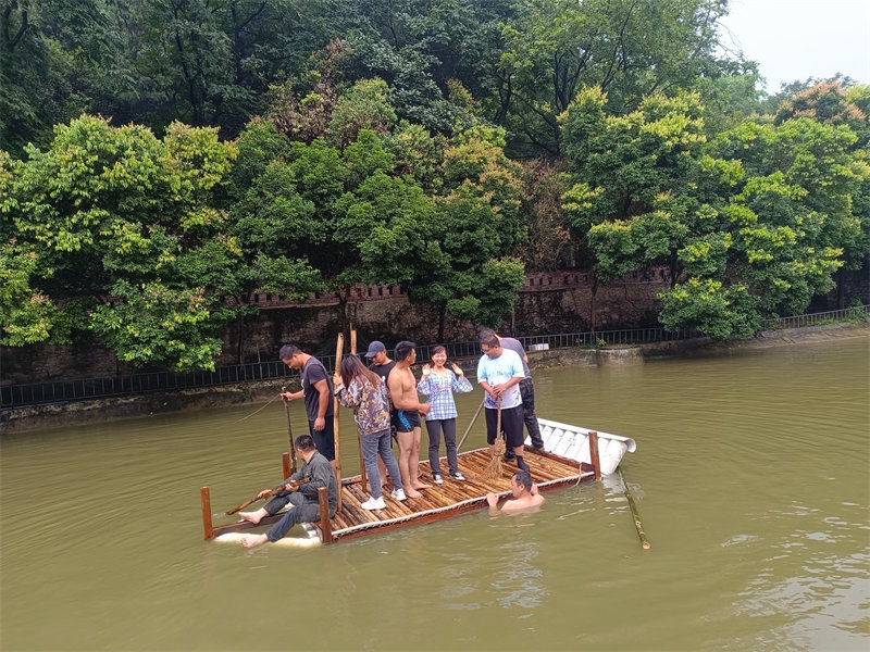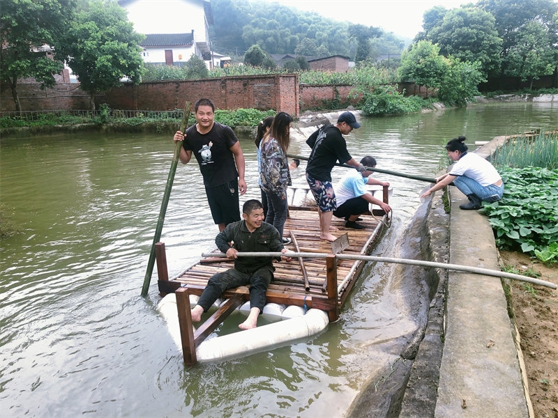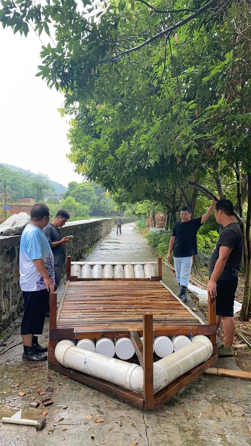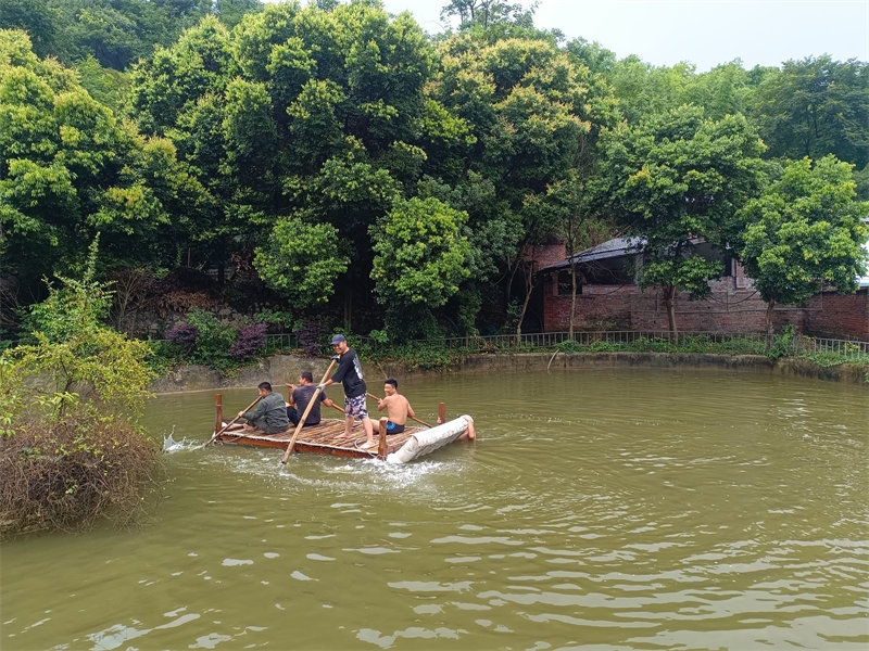 Qianlong and Fangyuan are two highly skilled craftsmen in the home, capable of repairing all kinds of equipment and solving mechanical issues in our daily life. On this particular day, they used old plastic pipes and spare wood to build a small raft. This raft could carry seven or eight Celestials at most. After its construction, the raft was ready for a test sail in the pond. Before long, it drew the curiosity of many brothers and sisters, all eager to try rowing on the water. A few expert swimmers were nearby to ensure safety. To our delight, the first test run of "Hengmao No. 1" was a success! Everyone had a great time, and we added a new entertainment activity to our list. Of course, this activity is limited to internal use and not open to tourists. Later, they even added railings around the boat, making it look more professional. Kudos to their creativity and craftsmanship!