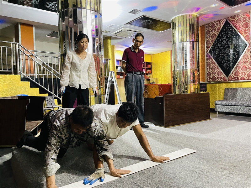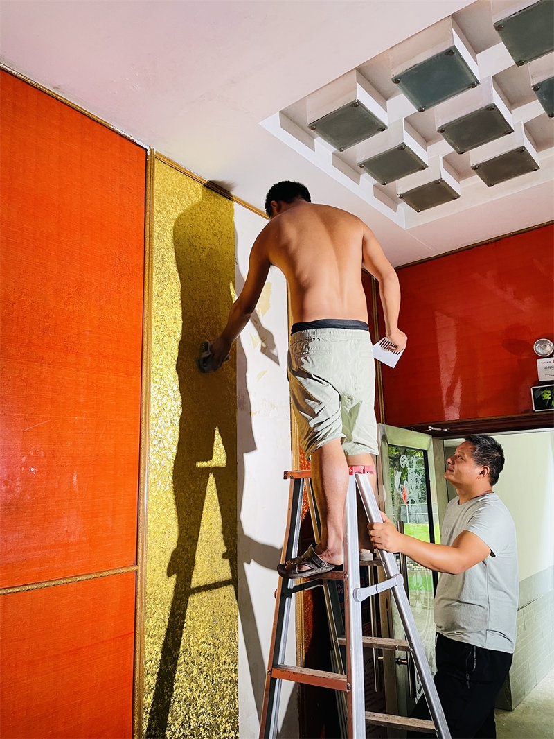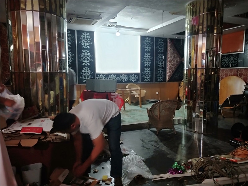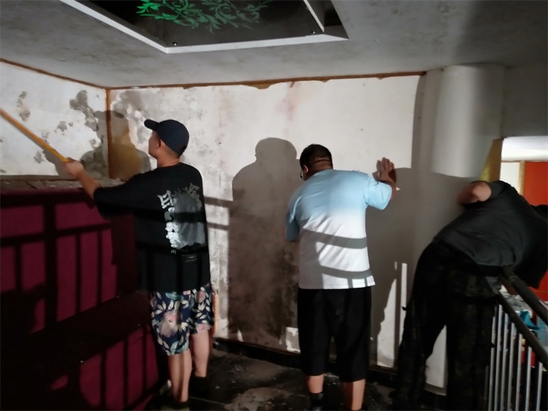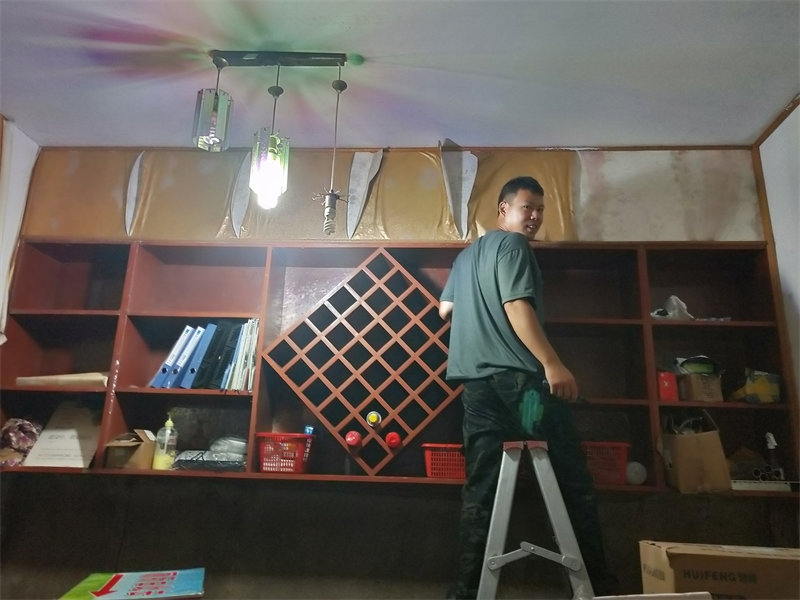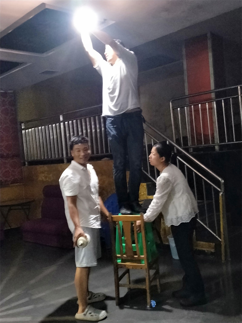When we first arrived at the Youth Homeland, the KTV room was filled with various clutter and was in total disarray. It was particularly dark and damp inside, and both the first and second floors were covered in standing water. On a few occasions, guests expressed a desire to sing in the KTV, so Director Yan decided to get the KTV back in shape to meet the guests' needs. A group of brothers and sisters joined forces to tackle the project. First, we moved all the clutter out, then we stripped the old, moldy wallpaper. After replastering the walls, we replaced the wallpaper with a fresh new look. The wooden sofas on the second floor had rotted completely, so we worked together to remove all the broken wood. A drainage channel was dug near the ground close to the mountain. We also purchased carpets, a karaoke machine, sound equipment, and starlight lamps. After a thorough cleaning and renovation, Director Yan even found a solution to the moisture issue in the KTV. Now, our KTV has a brand-new look. Congling is in charge of the KTV and the game room, helping guests with song selections and maintaining cleanliness. Once again, I witnessed everyone creating a miracle from ruins.