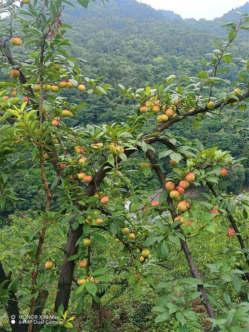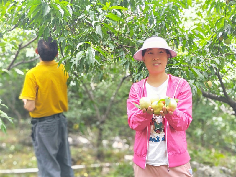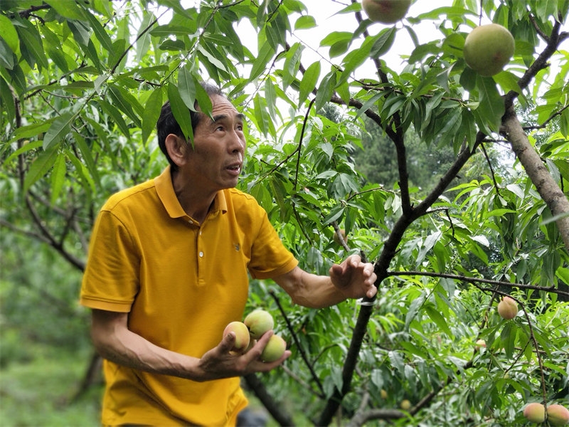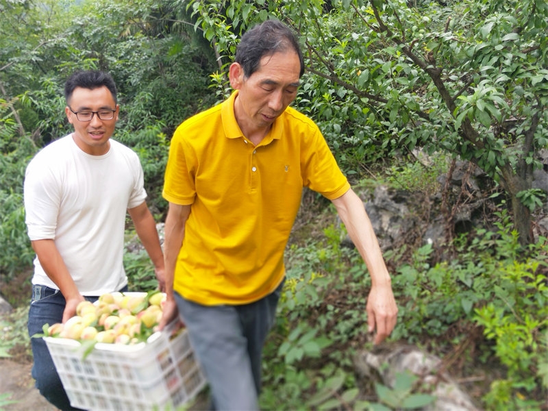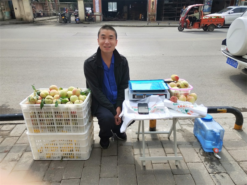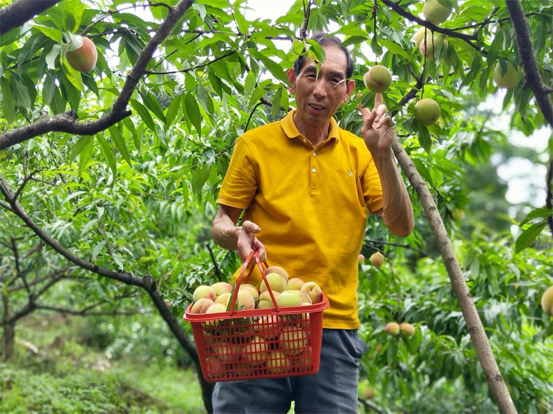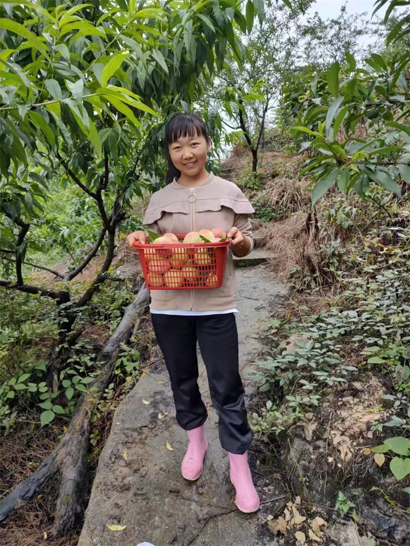 A vivid scene from the TV series Journey to the West once filled my mind—the moment when Sun Wukong was in charge of the Queen Mother's Celestial Peach Garden. The trees were laden with plump, dewy celestial peaches, glowing with a fresh, rosy hue. Several fairies, dressed in colorful, flowing silks, moved gracefully, elegantly detached from the mundane, searching and picking the celestial peaches. Little did I know, we would also have the fortune to experience such a delightful event ourselves, enjoying the pure joy of picking peaches. The Youth Homeland's back mountain boasts around 5,000 peach trees, 1,200 pear trees, 300 plum trees, and 50 loquat trees. The majority are peach trees, making it a true earthly paradise. The juicy peaches with rosy cheeks are the Baihua peaches, while the greenish, pointed ones are fragrant peaches, known for their crispy and sweet flavor. The joyful Celestials, carrying small baskets, eagerly search for the biggest, most enticing ripe peaches to pluck. After carefully selecting the best, our sales director, Dizu, along with other brothers and sisters, takes them to the market to sell.