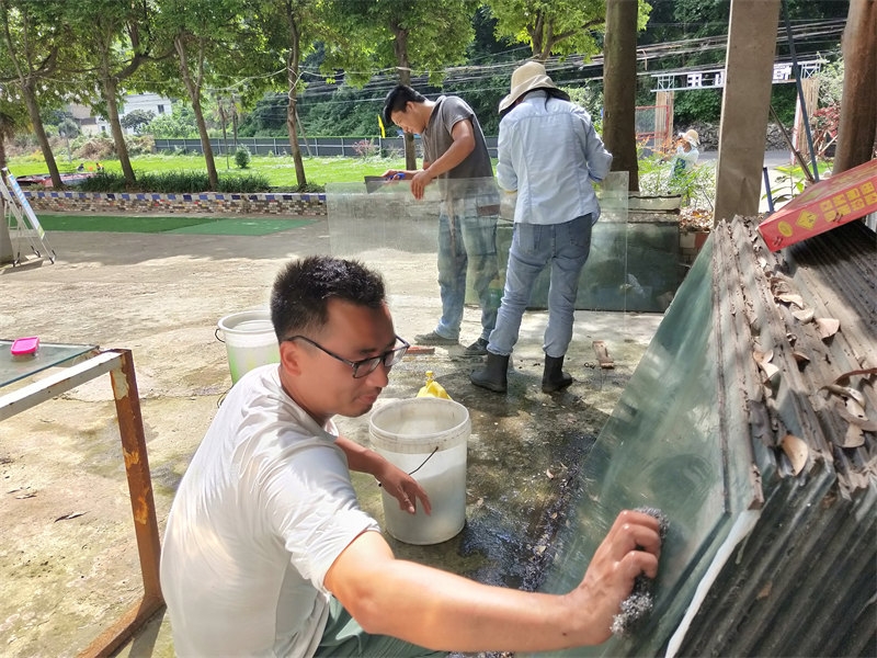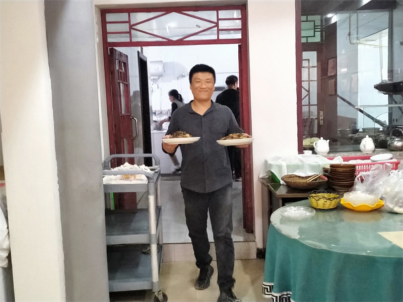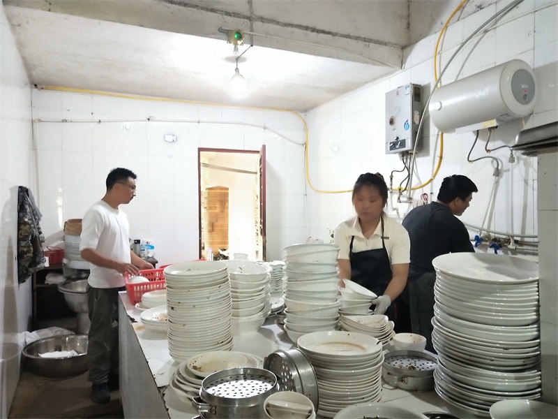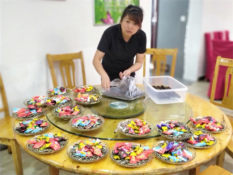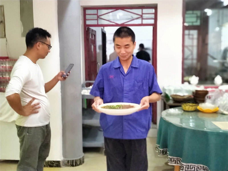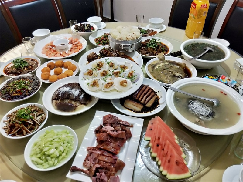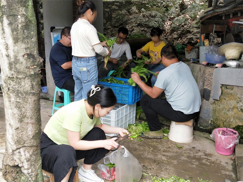 On June 10th, we received a booking for a 22-table lunch, plus an additional dozen tables for dinner, celebrating a 60th birthday. Each table seated 10 people, with more than 200 guests attending. The menu was diverse, and from the moment breakfast was finished, we began preparing vegetables and cooked dishes. It was an all-hands-on-deck situation, with everyone coordinating their tasks, bustling about in joyful collaboration. Running our own farmhouse inn means that everyone is both an owner and a server. Some curious guests asked, "It looks like a family business, right?" Though we didn’t introduce ourselves as such, they could clearly see the camaraderie. It was our first time handling such a grand banquet scene, and the whole day was lively and exciting. Everyone was enthusiastic, working together smoothly, and we completed the event successfully. Some of the brothers and sisters had already helped with a 38-table lunch banquet before we arrived, so compared to that, this felt like a smaller challenge.
