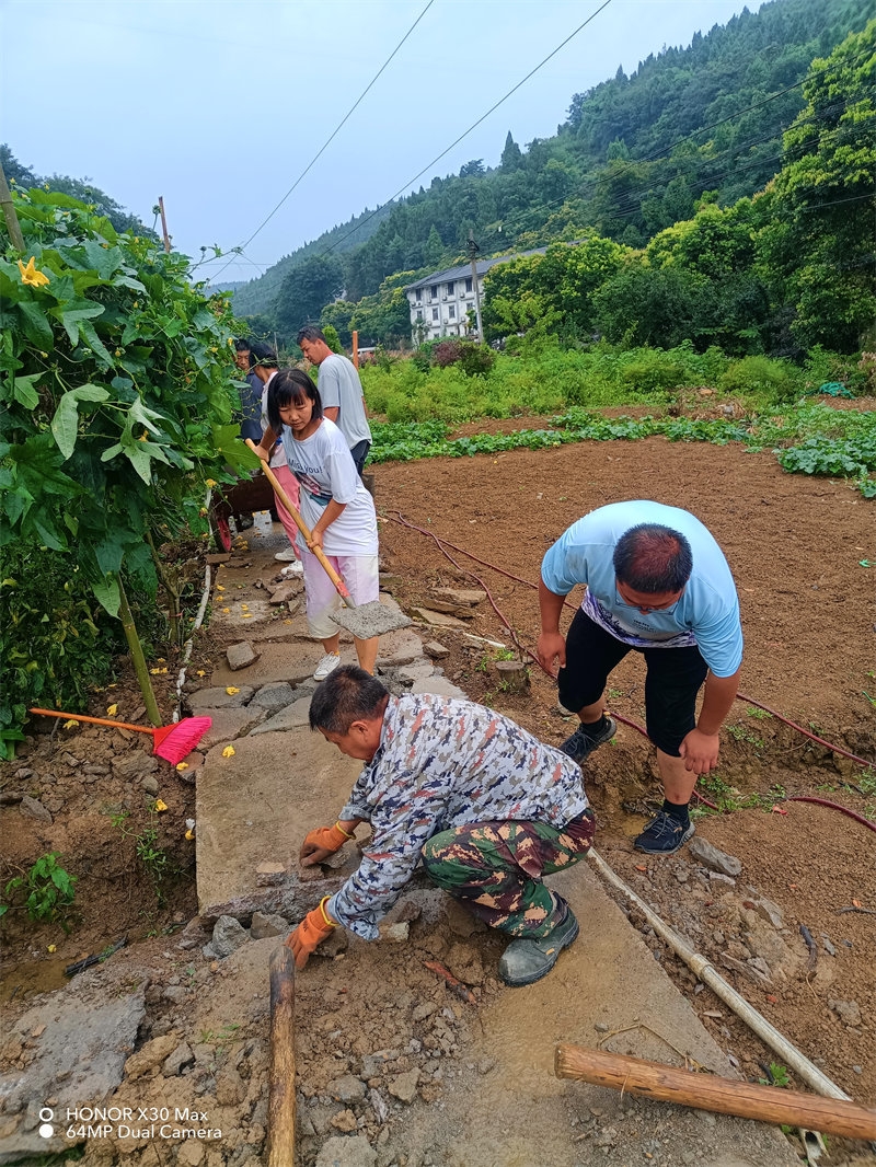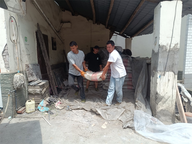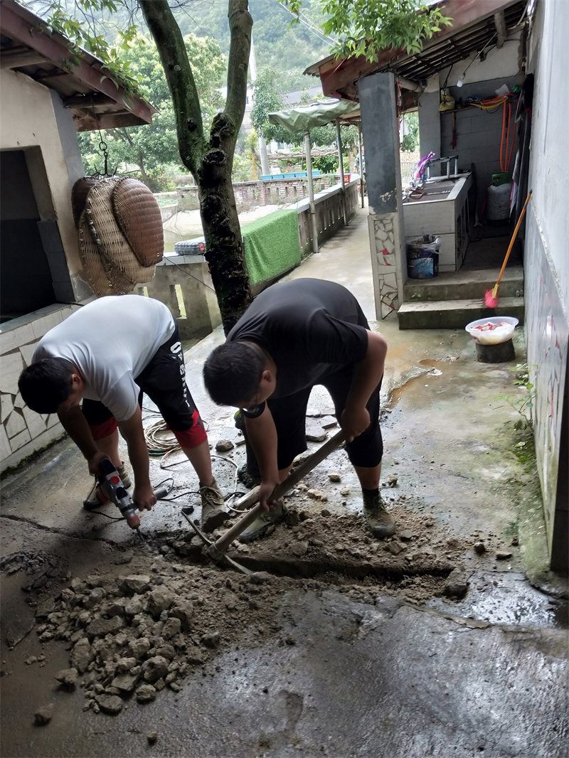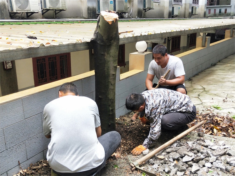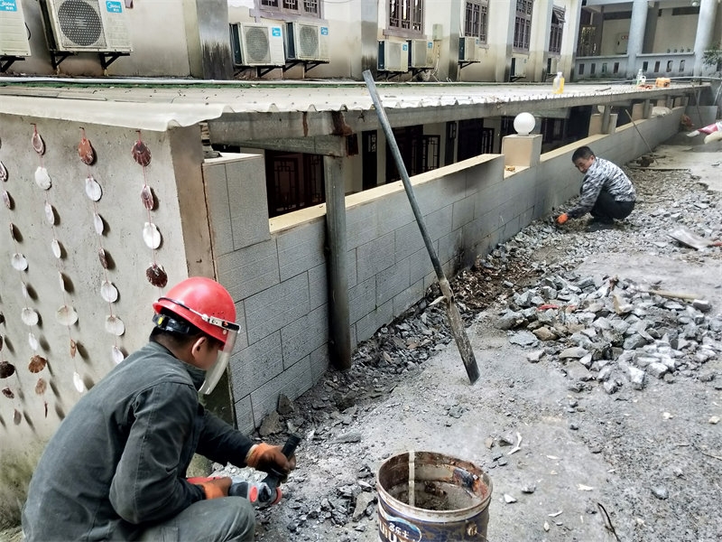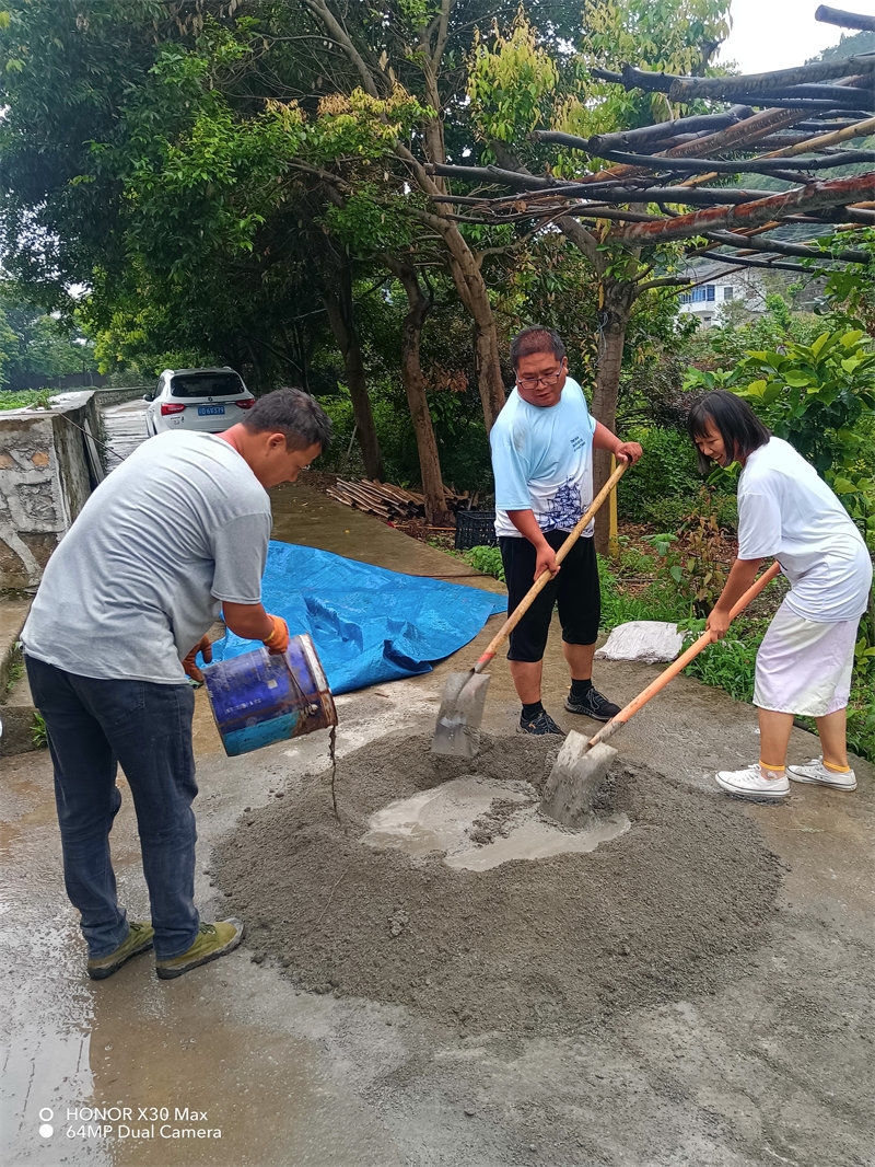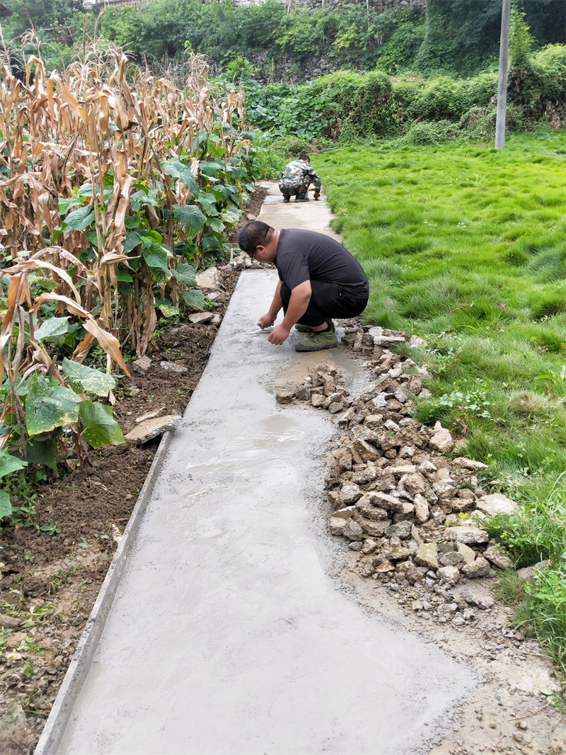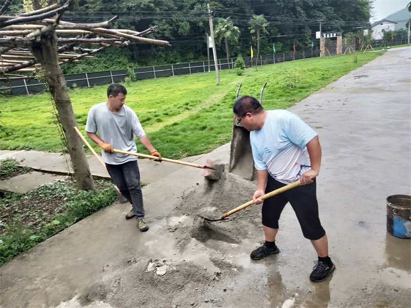 They are repairing paths leading to the vegetable garden. Many of the paths were cracked and needed new cement work for patching.