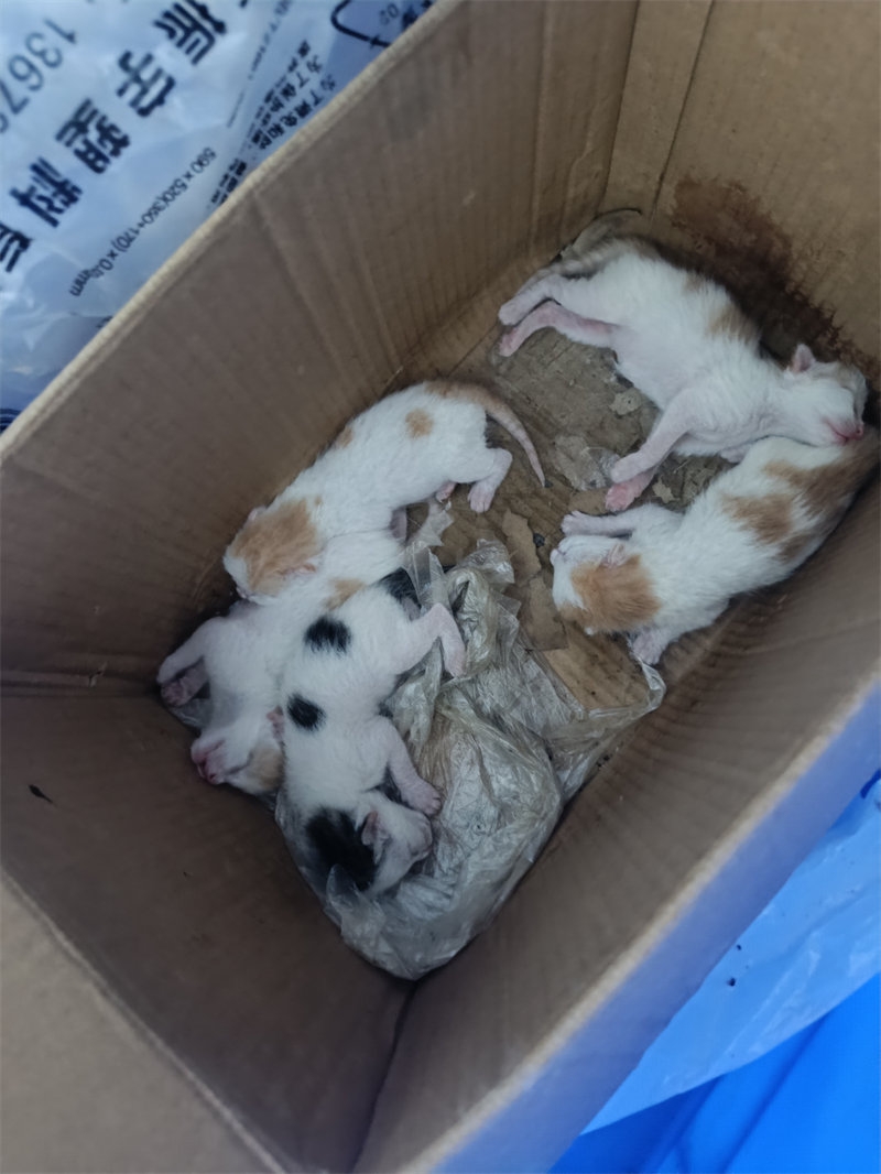Xiaohei found a hidden toolshed and gave birth to four little puppies that night. A few days later, the mother cat followed suit, giving birth to five adorable kittens in a cardboard box on the kitchen shelf. It was truly a double blessing, bringing joy to our home!