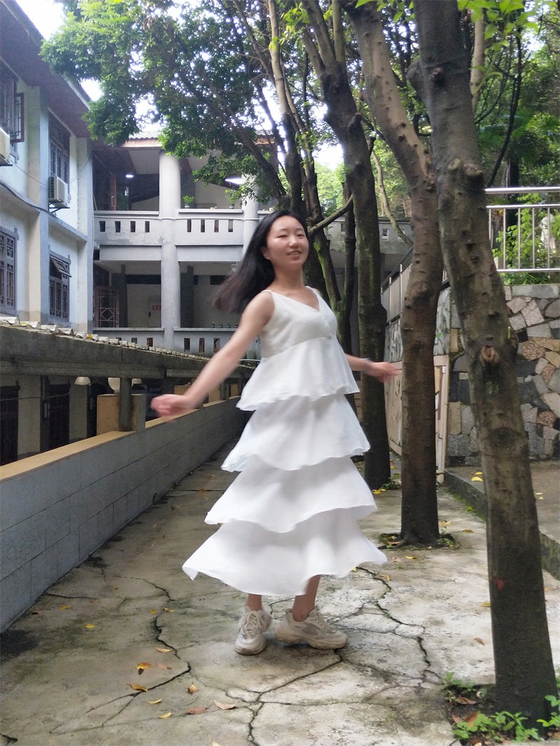 Here she comes, here she comes, walking toward us in her flowing white dress. Please enjoy the beautiful bloom of our little fairy, Danrui.