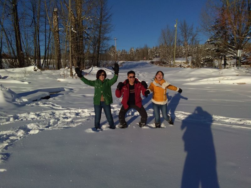 Today is the last day of 2017. The landscape is a winter wonderland with outdoor temperatures at minus 27 degrees Celsius. The sky is clear and the air is exceptionally fresh. Lac La Hache is covered in a blanket of white. We walked from one side of the lake to the other and back, a journey that took over an hour. Although I grew up in northwest China, walking through such thick ice and snow is a first for me and a moment worth documenting.