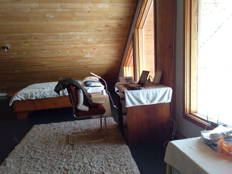 I’ve moved from the hotel room to the third floor—oh, it’s so comfortable! From my desk, I can now see Lac La Hache and the constantly flowing traffic on Highway 97.