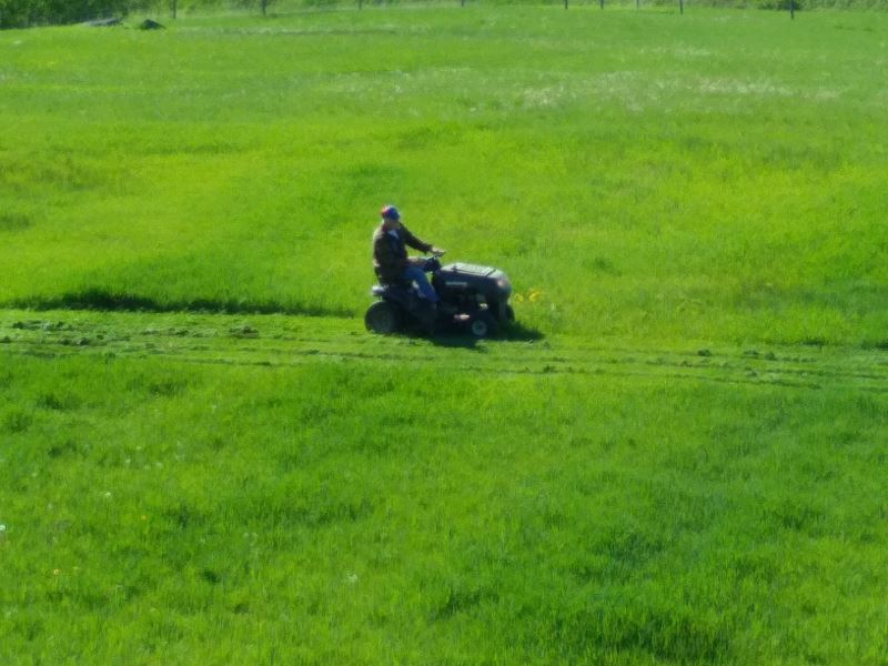 So, I called our neighbors to see if they could find someone to help with the mowing. The next day, the neighbors came over to assist with mowing the lawn. Please take a look.\