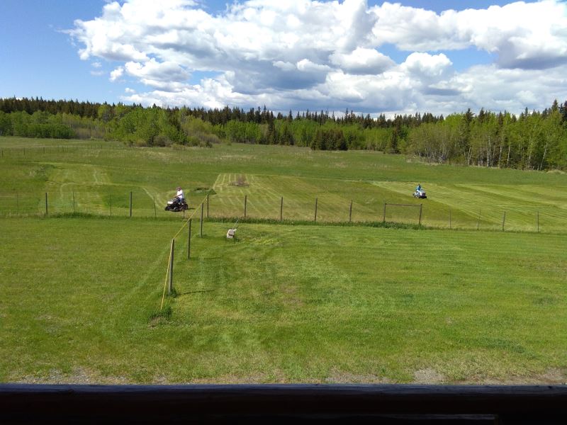 # Neighbors from the Canadian Oasis came to help with mowing the lawn!