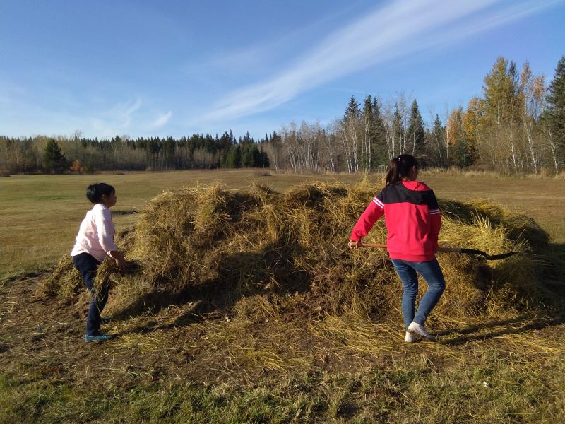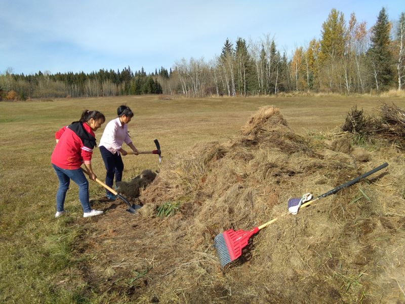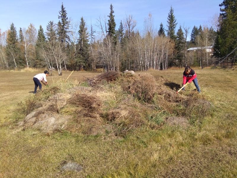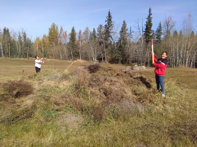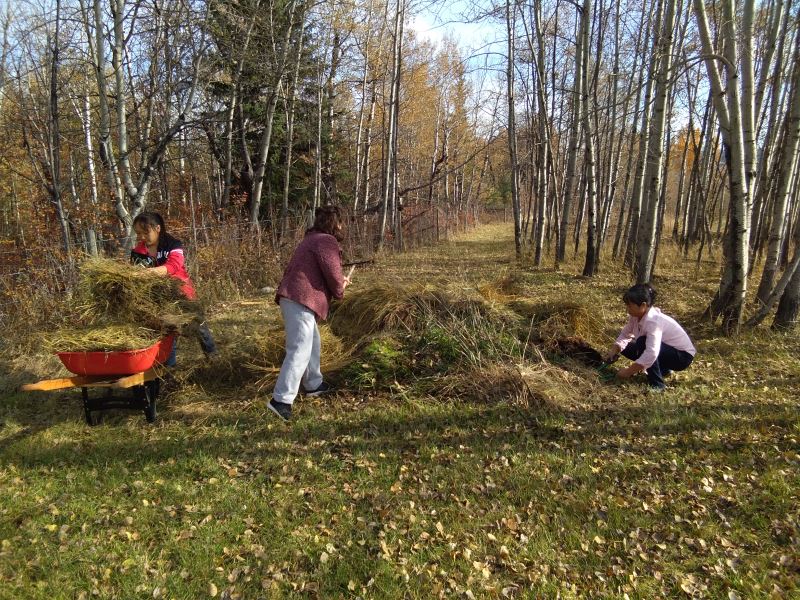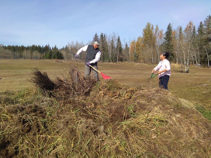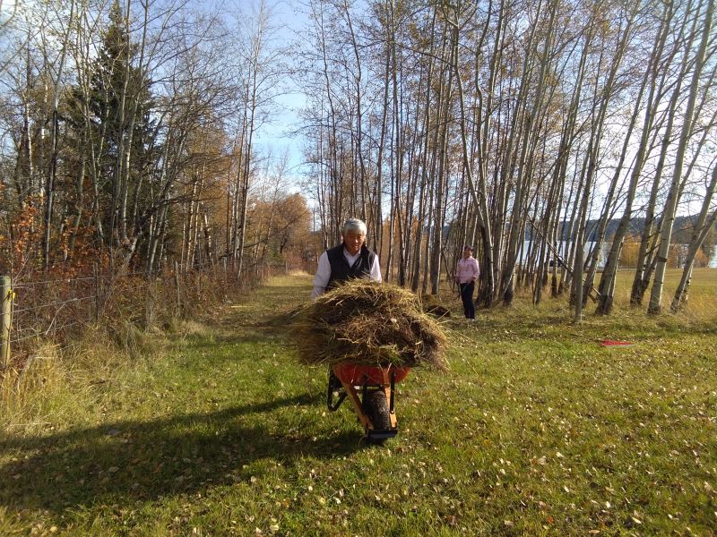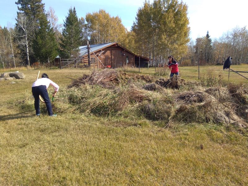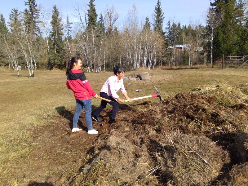 The temperatures at the Canadian Oasis are already below freezing in the early morning and evening, with deep autumn weather during the day, chilly and brisk. Painting work is temporarily on hold. Yesterday, we cut down branches that were obstructing traffic, tidied up the piles of grass, and prepared to move a large pile of dirt from behind the small rock garden to a ditch on the other side of the backyard fence to level the lawn.