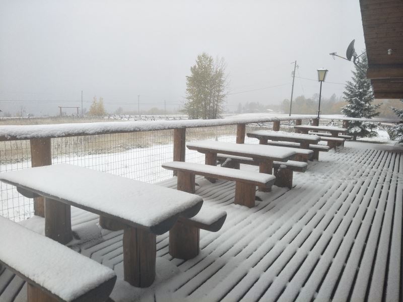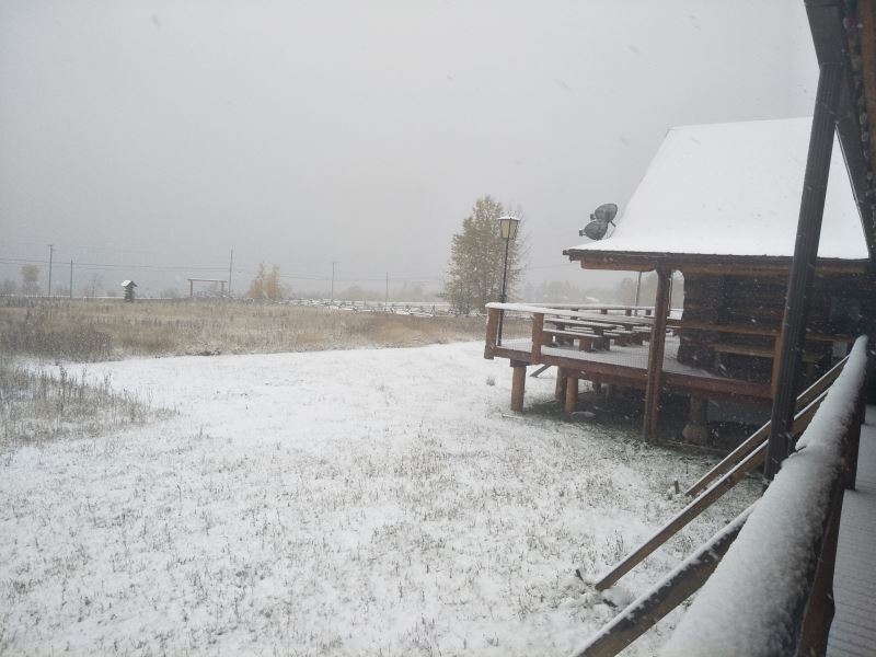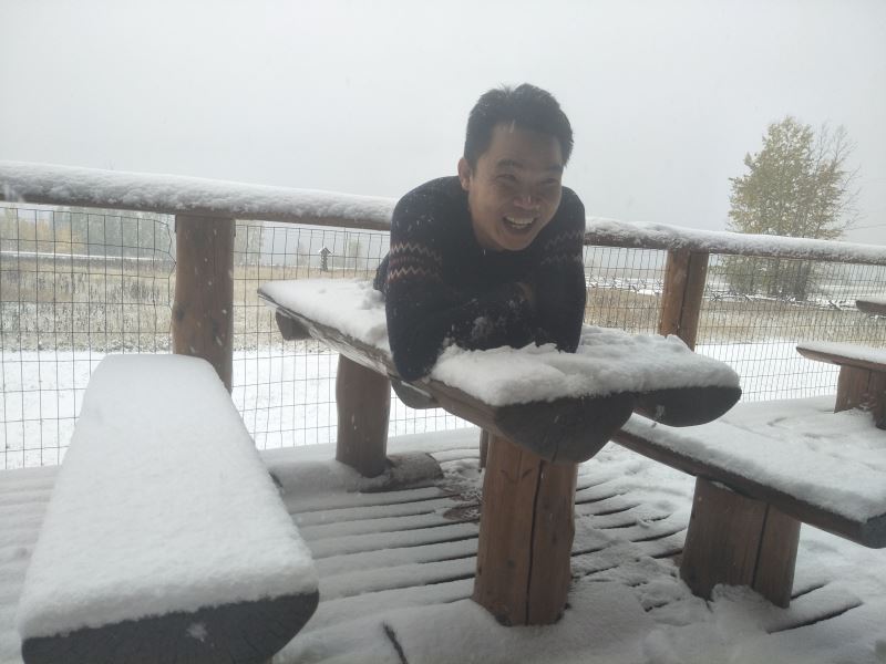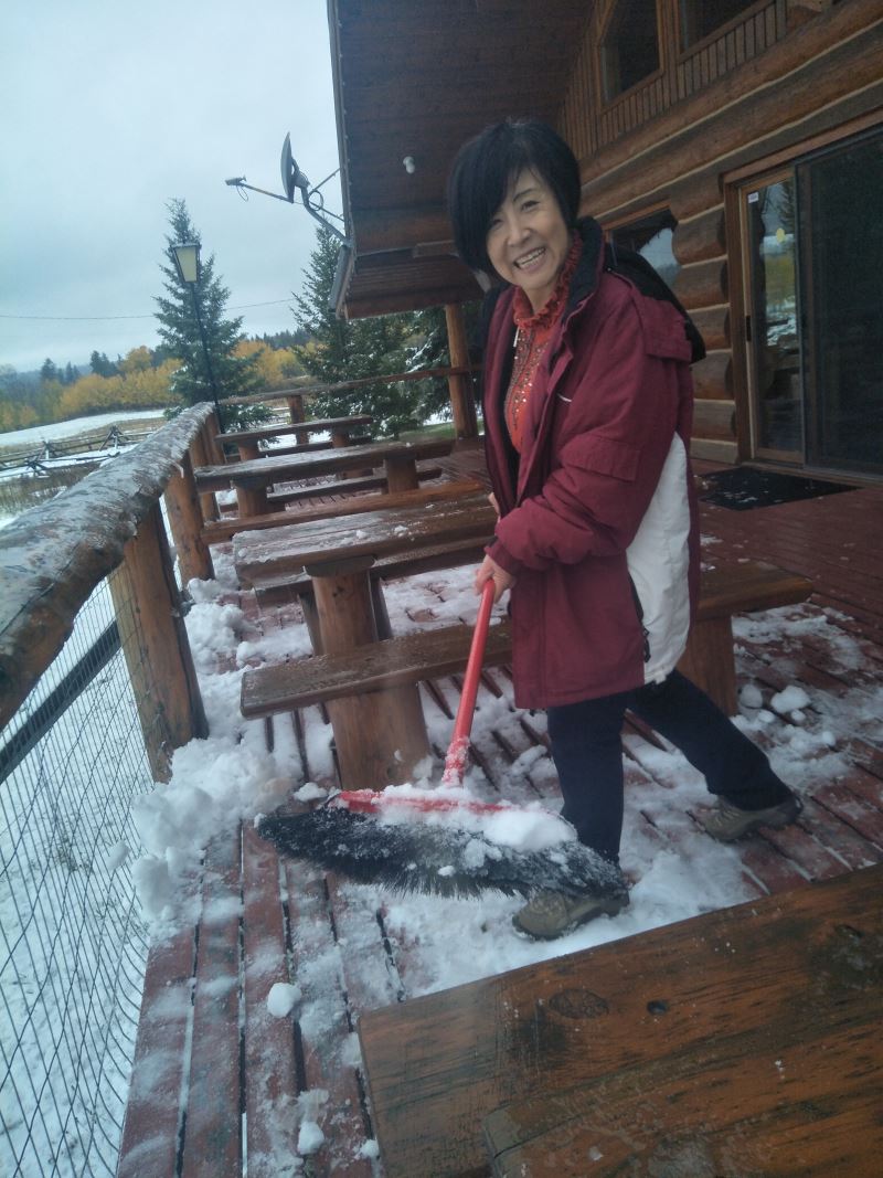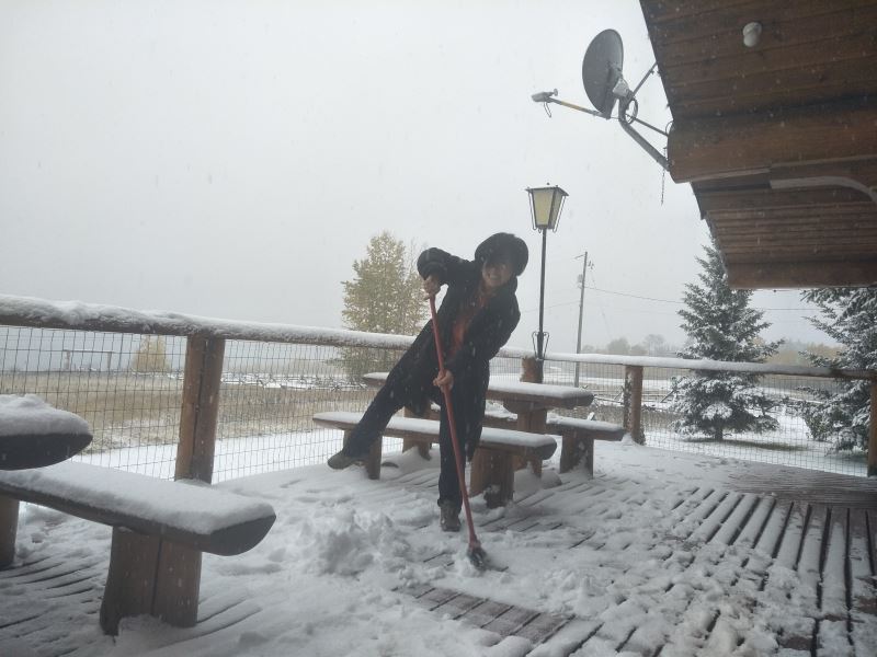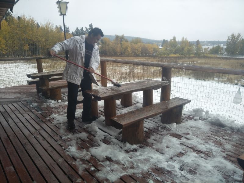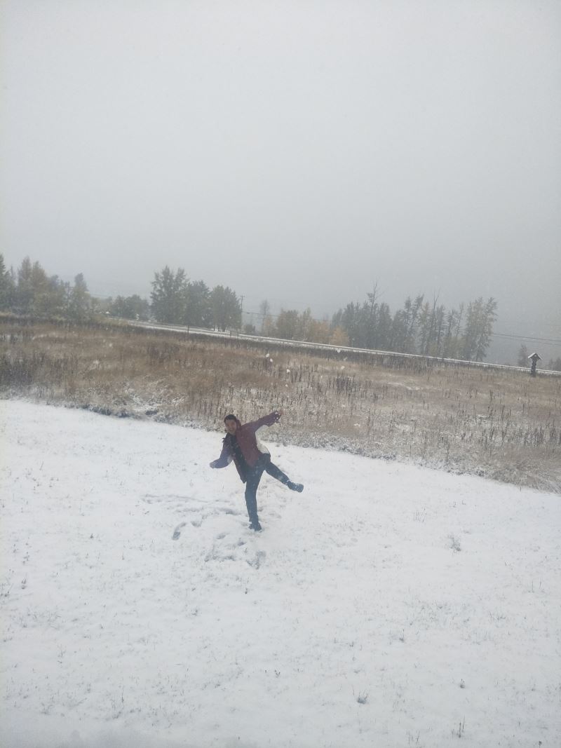 Ehuang: “The snow is still falling. Last night it was clear and starry, but this morning we woke up to a blanket of snow. It’s truly incredible.” — October 14, 2017, in the Canadian BC province. The first snowfall at the Oasis of Life. The two little kids are excitedly playing in the snow. Please enjoy the scene. For children who want to play in the snow, come to the Oasis of Life for a snowball fight!