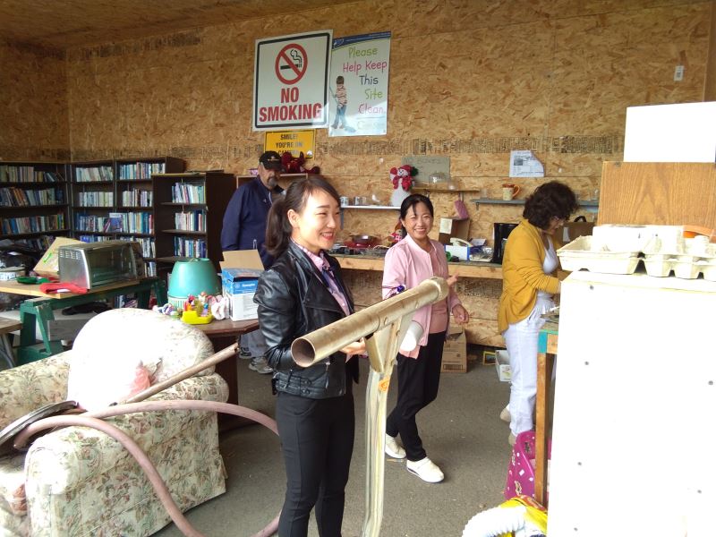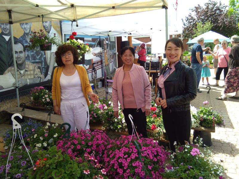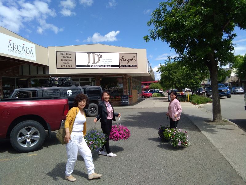 Today, we went for a drive to Baili Village! We visited the accounting office, the bank, and picked up the repaired lawnmower. We also went shopping at the supermarket and, in particular, bought flower baskets at the flea market. I had always wanted to hang flower baskets at the Oasis but hadn’t gotten around to it, mainly due to concerns about not being able to care for them. Now that Fairy Xinrui is here to help, I bought the baskets to add some charm and color to the Canadian Oasis.