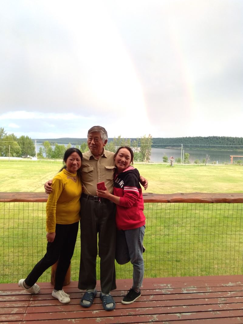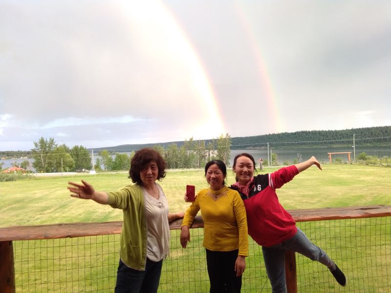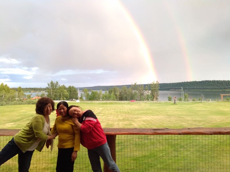 Today, after dinner, a double rainbow appeared above Lake Lac La Hache, and the light from the international family’s area was dazzling and beautiful. It’s a moment worth celebrating.