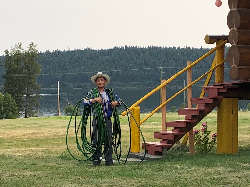 From early spring to midsummer is the busiest time here. Each of us has plenty to do, and we're so busy that we hardly have time to take photos together. However, just before the busy season started, we took a trip to the Waterfall Park in 100 Mile House. We experienced the spectacular beauty of the waterfalls up close, feeling the spiritual charm of pure water, which nourished our souls.