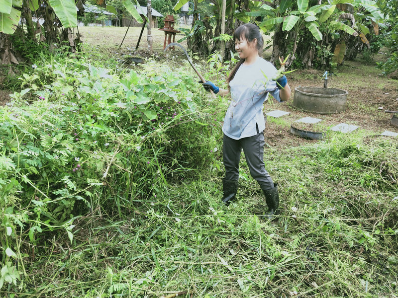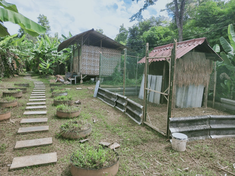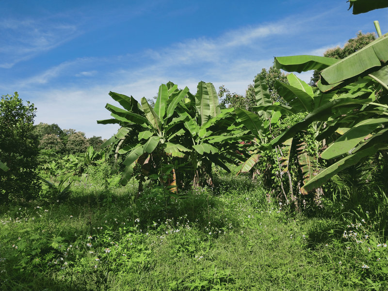 The first subdivision is a paradise for banana trees; they are still producing more bananas than we can eat. There’s also an abundance of papayas, surprisingly thriving passion fruit, a few eggplants and chili plants, and many flowers that are growing well. However, other vegetables like bell peppers, corn, bitter melon, sweet potatoes, beans, tomatoes, green onions, okra, water spinach, and strawberries have long been overtaken by the wild grass, their presence completely erased by the harsh realities of nature. The hardier, woody plants and trees have fared much better, becoming self-sustaining and requiring less management.