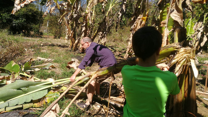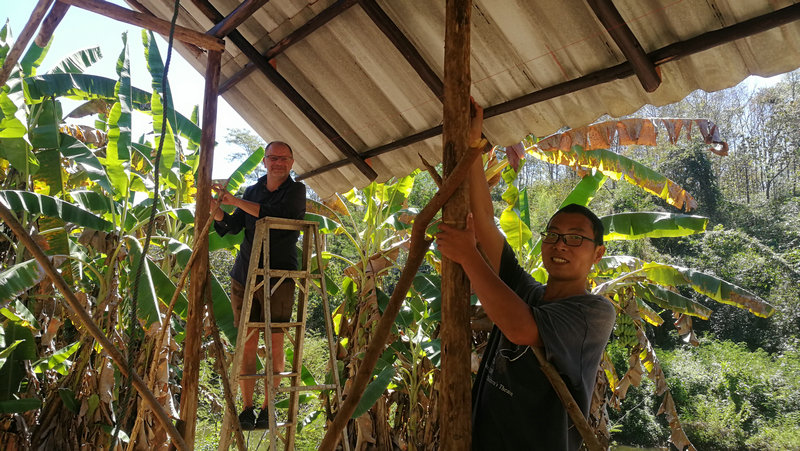 During their stay, Aldo and Elliott also took an interest in helping with the construction of our new house and cutting down excess banana trees, adding to their travel experiences and enjoyment. Huiyi and Huiguang shared insights about the life model of our former community and explained the reasons behind establishing the Thailand Branch, all in fluent English. They also showed them some of Baichuan’s English videos, giving them a visual understanding of our beautiful way of life.