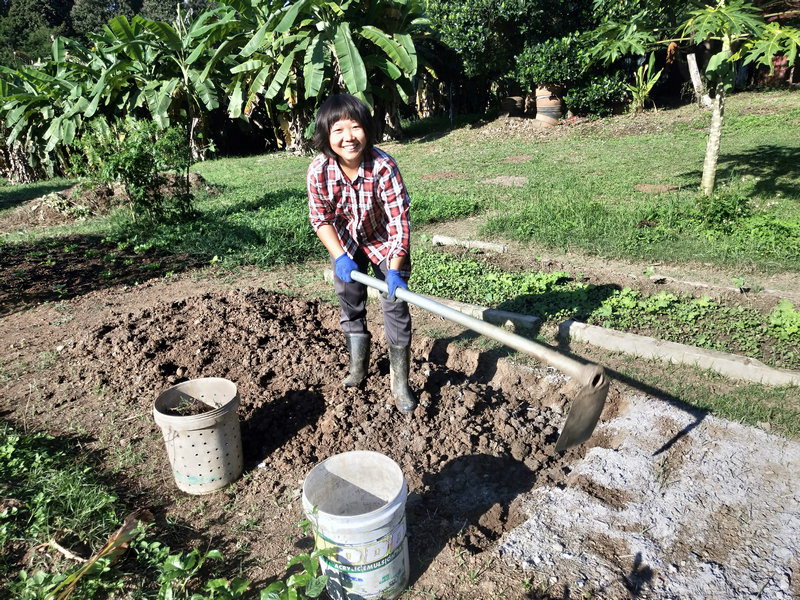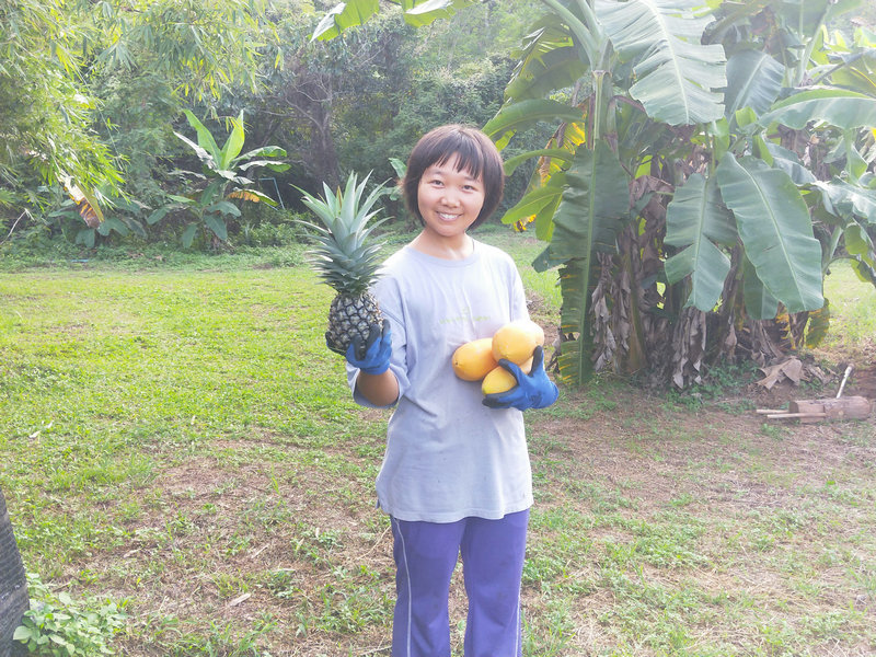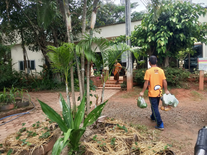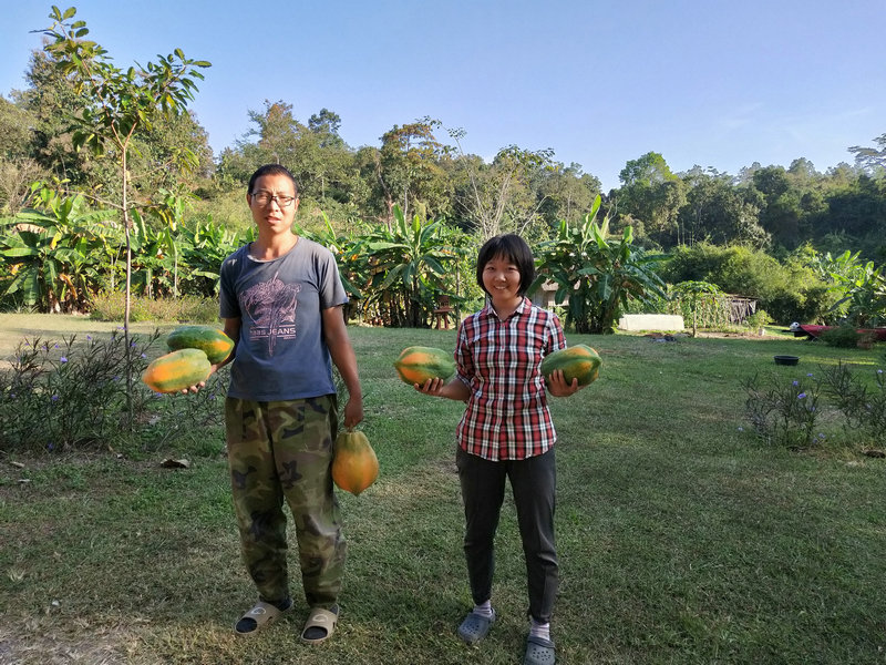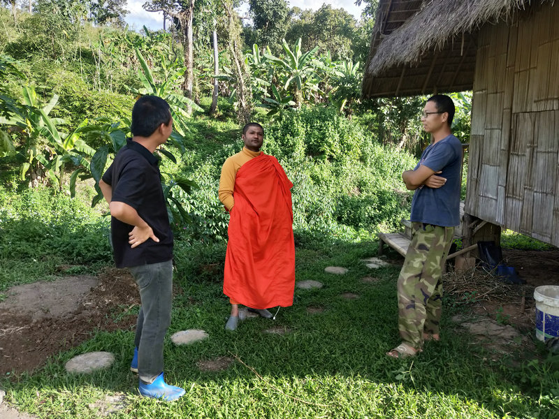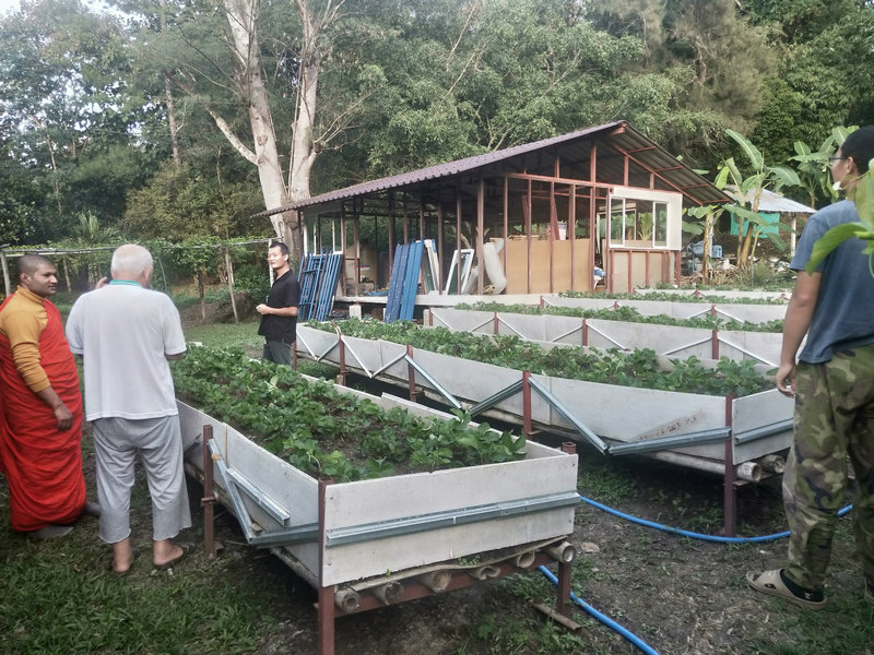 4. Anan's Visit and Meeting Naiyana Anan is a monk we met at the second branch, originally from Sri Lanka and now practicing in Thailand. He acts as the assistant to the abbot, helping to receive visitors and assisting with various duties. Last week, during his vacation, he visited the nearby temple and took the opportunity to catch up with us at the first branch. After Huiyi gave him a tour of our place, Anan offered to take us to visit a friend’s farm nearby. It turns out that many people are now interested in farming and living sustainably. The farm we visited is run by a Thai father and daughter, featuring neat rows of rectangular vegetable beds, well-organized and spacious. The farm also boasts strawberry plants, large passion fruits, banana trees, durian trees, coffee trees, lychee trees, mango trees, and a pond with flowing water, creating a vibrant and lively environment. It’s a beautiful place, a reminder that there are wonderful spots like this everywhere.