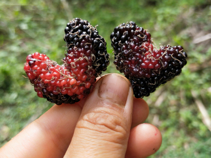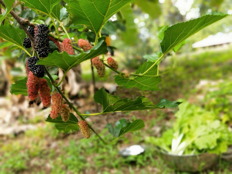 1. Mulberries Bear Fruit Again One day, while I was cleaning the kitchen, Huiyi, who was out mowing the lawn, suddenly called out excitedly for me to come and pick some mulberries. I was puzzled at first, wondering if it was really mulberry season. But when I reached the mulberry tree, I found it had quietly produced many plump, purple-red berries without me noticing. Seeing the branches heavy with fruit filled my heart with joy. I picked one and tasted it—sweet and tangy, a true delicacy. This mulberry tree has always been a reliable fruit bearer in our garden, with each year bringing more abundance than the last. I recall giving it two buckets of diluted urea about a month ago, and it seems to have responded quickly, even producing some uniquely heart-shaped berries, as if the tree itself were expressing gratitude. It made me reflect on the idea that all living things are connected and can respond to our intentions. Giving is the foundation of receiving, whether it’s with people or with nature.