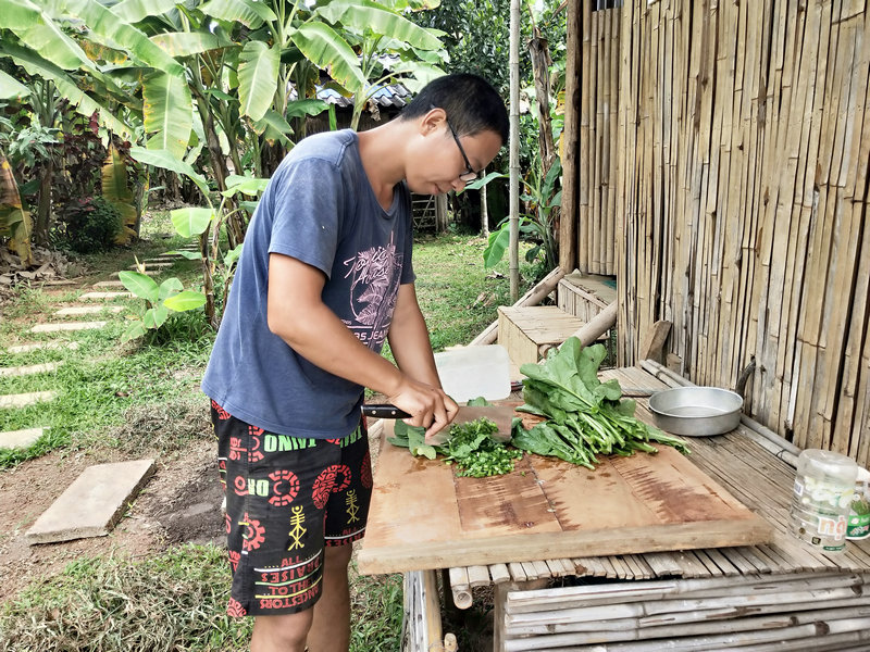 2. Selling Cabbage Last week, Guang went to the market to sell cabbage, and it sold out in no time. He returned, happily sharing, "Vegetables are even more popular than bananas; we should consider growing more." After selling vegetables three times, it’s clear that the locals have a strong preference for them—demand always exceeds supply. Even after selling a portion, we still have some cabbage left in the field, now beginning to head. Besides using it for our own meals, we also need to provide the chickens with vegetables. We plan to plant another batch of cabbage and Shanghai greens while the weather is still cool. But growing anything requires careful attention to water and nutrients (nitrogen, phosphorus, and potassium). The process of gardening also offers lessons in understanding natural laws and the opportunity to communicate with plants. It’s about learning to provide just the right amount of water and fertilizer, understanding their needs and growth cycles, and nurturing them to thrive and produce abundantly. This requires both experience and a heightened sense of intuition.