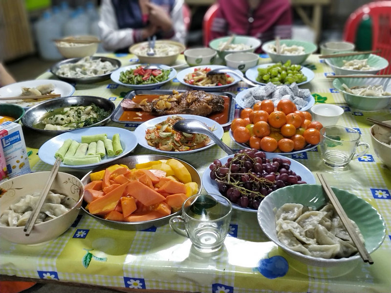 Our reunion dinner was a perfect gathering of ten people from Thailand, China, Vietnam, the UK, and Taiwan. Everyone participated in making dumplings, and David, Pitoy, and Mrs. Lin each prepared their specialty dishes, giving us the opportunity to savor flavors from different regions. It truly felt like a glimpse of an international family coming together.