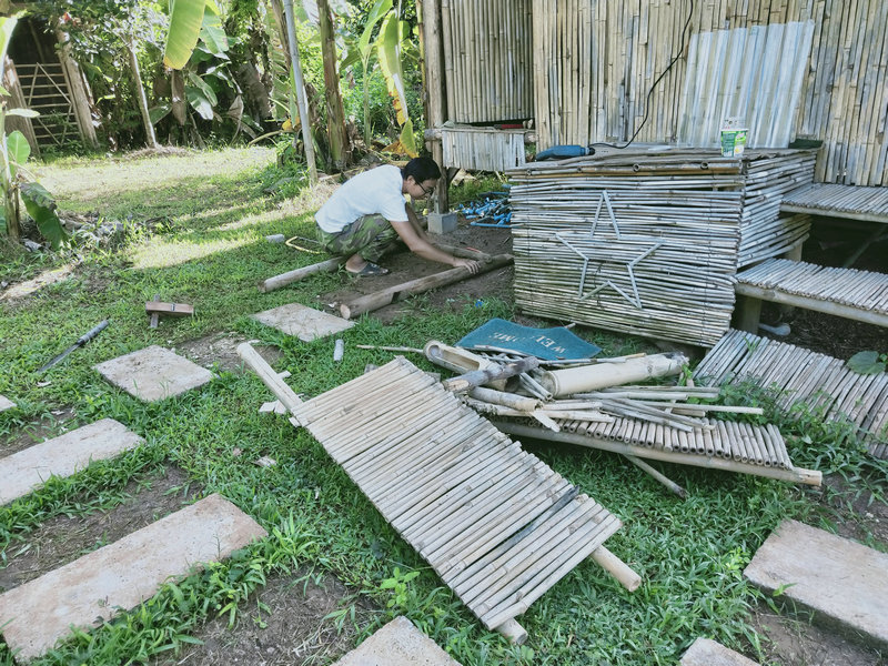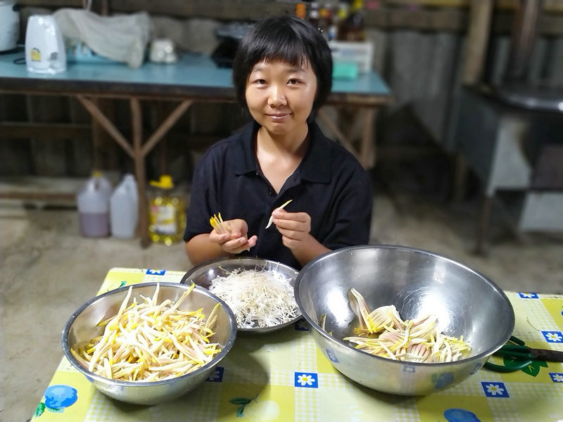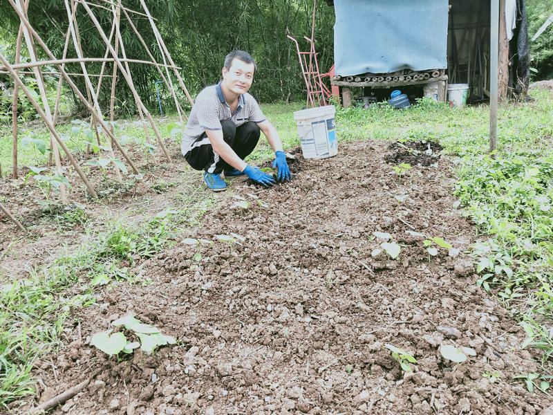 Guang continues to create various useful tools and facilities for us, such as building vegetable trellises, making new steps for the bathroom, constructing a husk storage bin, and crafting net covers to protect seedlings from insects. On weekends, he helps with cooking, goes out to sell fruits (which I'll talk about in another post), and recently started working on compost bins. Surprisingly, he even made DIY chopsticks! Our "jack-of-all-trades" Guang has made our lives much more convenient and brought many pleasant surprises.