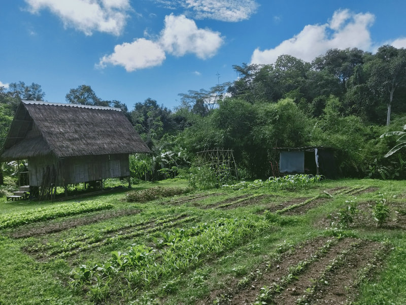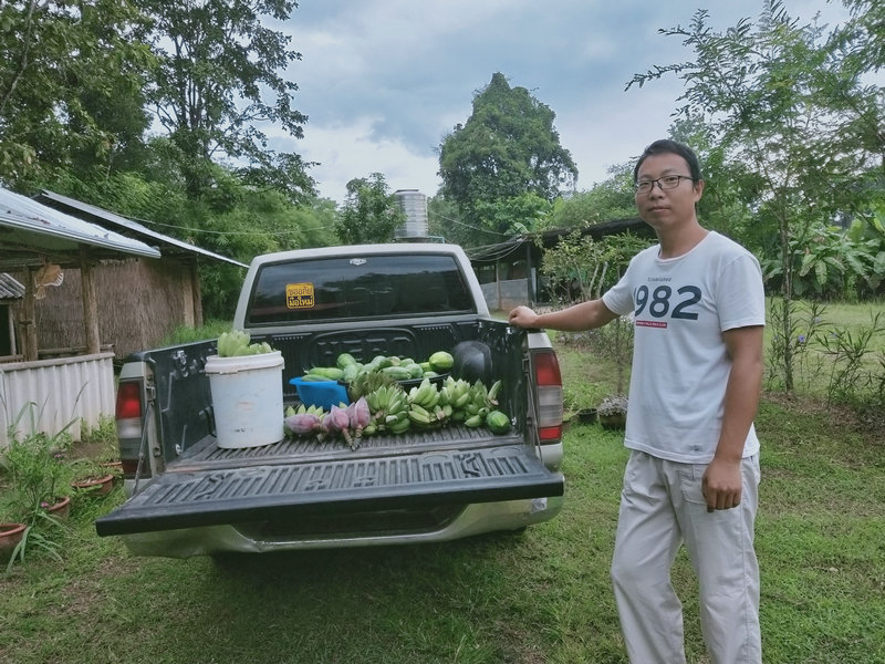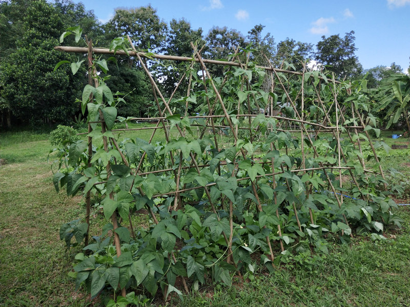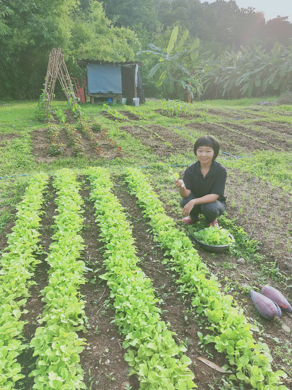 After more than a month of diligent planting, combined with Thailand's naturally favorable climate, our surroundings have become lush and vibrant year-round, making it ideal for growing a variety of vegetables. Leafy greens, such as amaranth, bok choy, water spinach, Shanghai greens, chives, green onions, and cilantro, have grown at an impressive rate and are now ready for us to enjoy. Other vegetables like cucumbers, gourds, bitter melons, long beans, eggplants, pumpkins, tomatoes, okra, chilies, and corn, which have longer growth cycles, will require a bit more patience before they mature.