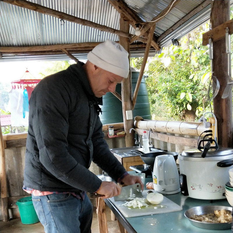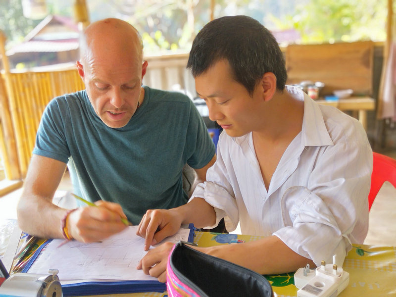 In our last update, we mentioned that David had arrived at the Thailand First Branch with all his belongings and luggage. Over time, we've gotten to know him better, and it’s clear he has a deep passion for collecting seeds and studying various plants. David has gathered seeds from different countries and is eager to plant them with us. He often cooks meals and brews tea for us, generously sharing his belongings and showing warmth and affection toward both people and plants. His gratitude for food is always evident. David also enjoys construction work, and with Hui Yi planning to build a garage, three houses, and a bread oven, David has taken on the role of architect with great enthusiasm.