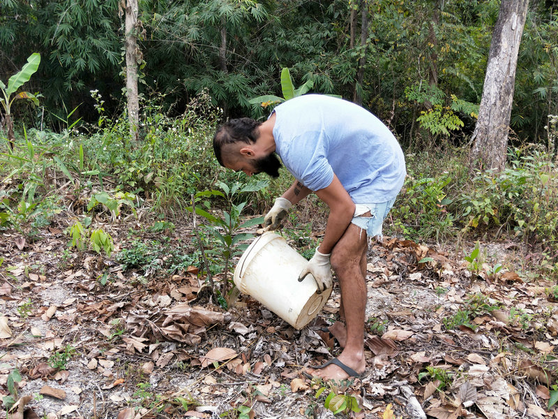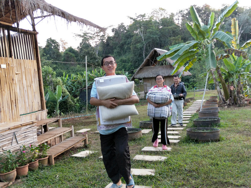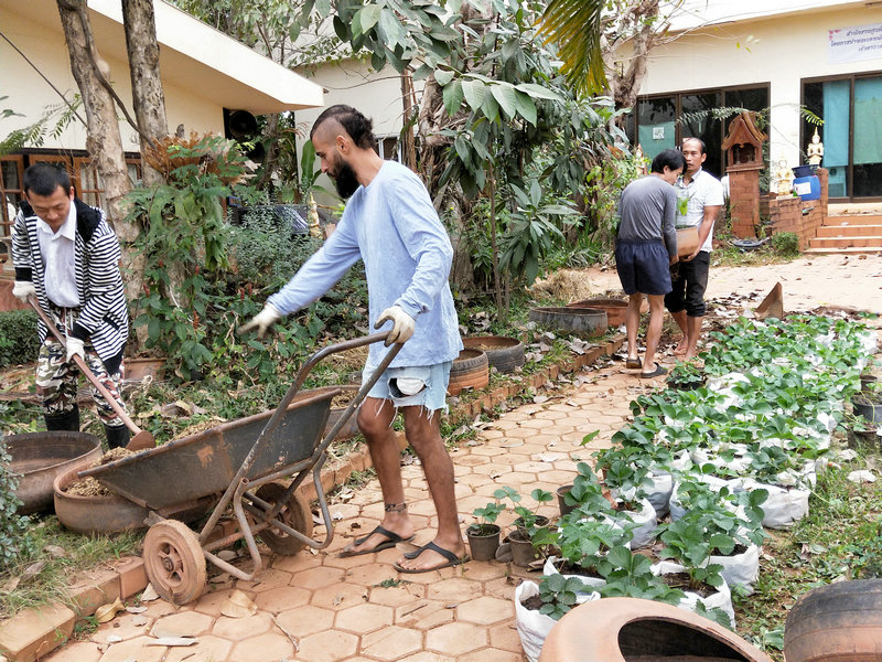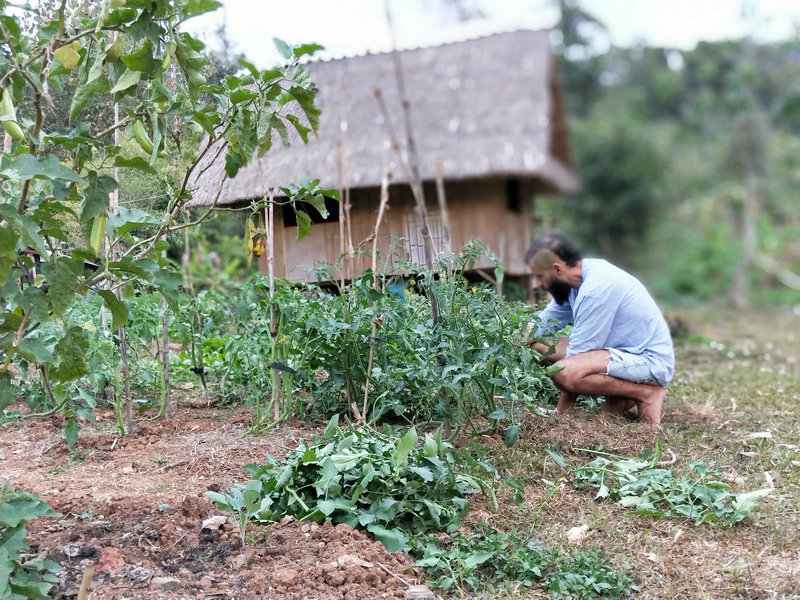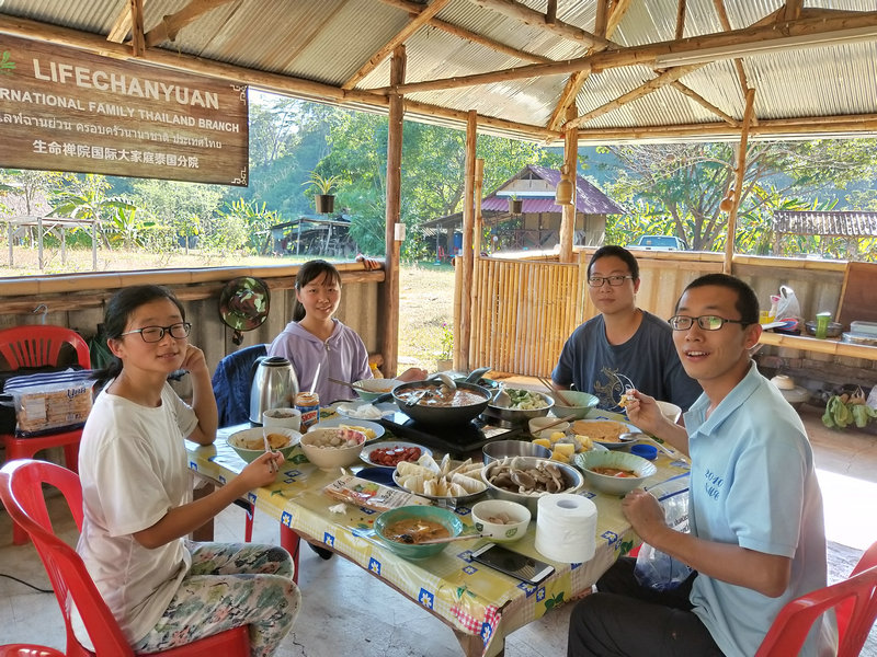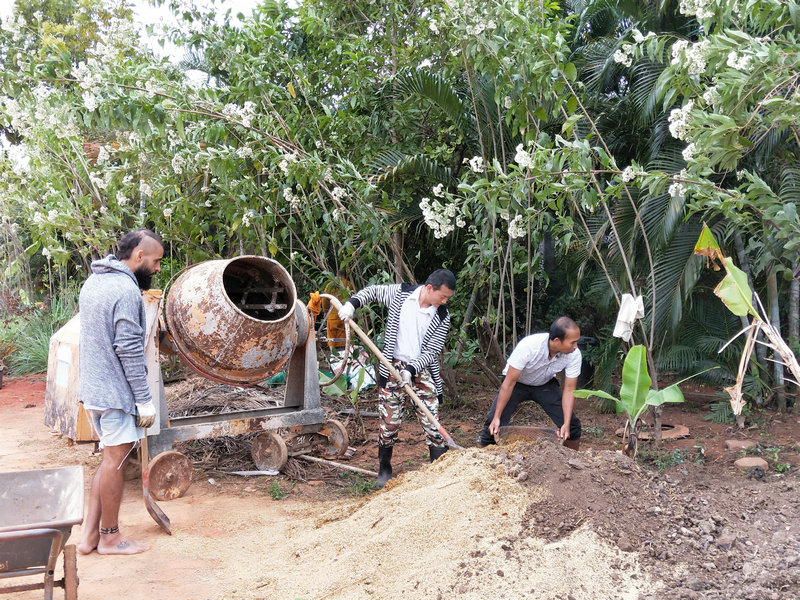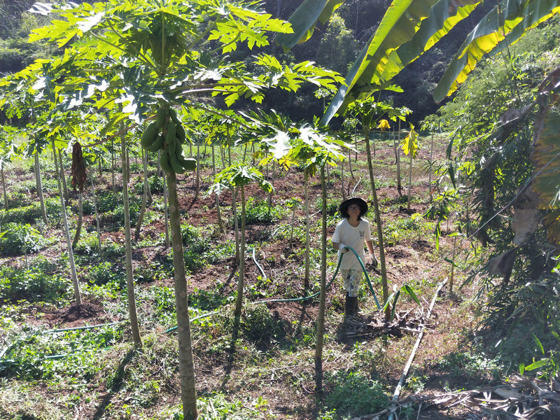 We collectively watered and fertilized the papaya orchard, weeded the area, and mulched it. Huiyi and the newly arrived young man also drew water to irrigate and mulch the mango and avocado trees planted last year. The banana trees on the hillside have a high survival rate and grow quickly; now the entire hillside and the surrounding areas are planted with them. It seems this place truly belongs to the banana trees. Guangge was invited to help at the Thailand Branch Two. Speaking of the Israeli young man, he's a friend of David’s and a vegetarian. He is around our age and is known for being able to do many things. As expected, he immediately helped us prune all the tomato seedlings in the vegetable garden. He seems very interested in managing the garden, working diligently, helping with watering, organizing the banana trees, and assisting with tasks at the neighboring temple. Huiyi introduced him to our community’s history, books, and videos, which he found very impressive. Hopefully, he will gain a deeper understanding and appreciation of the new lifestyle model for humanity.