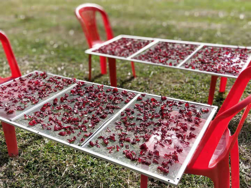 Lately, I've been immersed in the joy and happiness of various harvests. Yangle left us some delightful surprises: the gourds are thriving, and the sweet potatoes have also yielded a bountiful harvest. We harvested two baskets of roselle flowers, made sweet and sour jam, removed the seeds, dried the calyxes, and now we have a delicious drink. The cucumber seedlings nurtured by Qianzi, under the meticulous care of Brother Guang, have borne abundant fruit—crisp, refreshing, and sweet. We also unexpectedly dug up a lot of ginger that we had planted. The bananas are plentiful year-round, and we dried some sweet bananas for snacks.