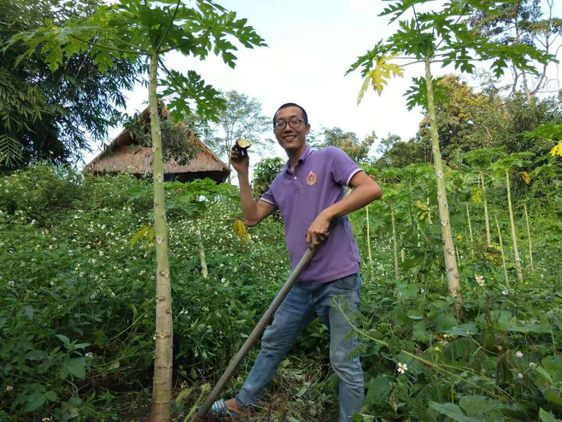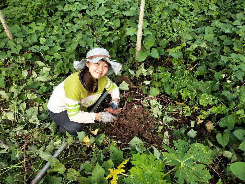 Yangle is a gardening genius. The sweet potato seedlings he planted were not bought from the market but came from a few sprouting sweet potatoes he had grown himself. By cutting the stems, rooting them in water, and propagating them, each segment of the vine could root, sprout, and grow into a new plant. I had previously only seen sweet potato propagation done in nurseries, so this was a new learning experience.