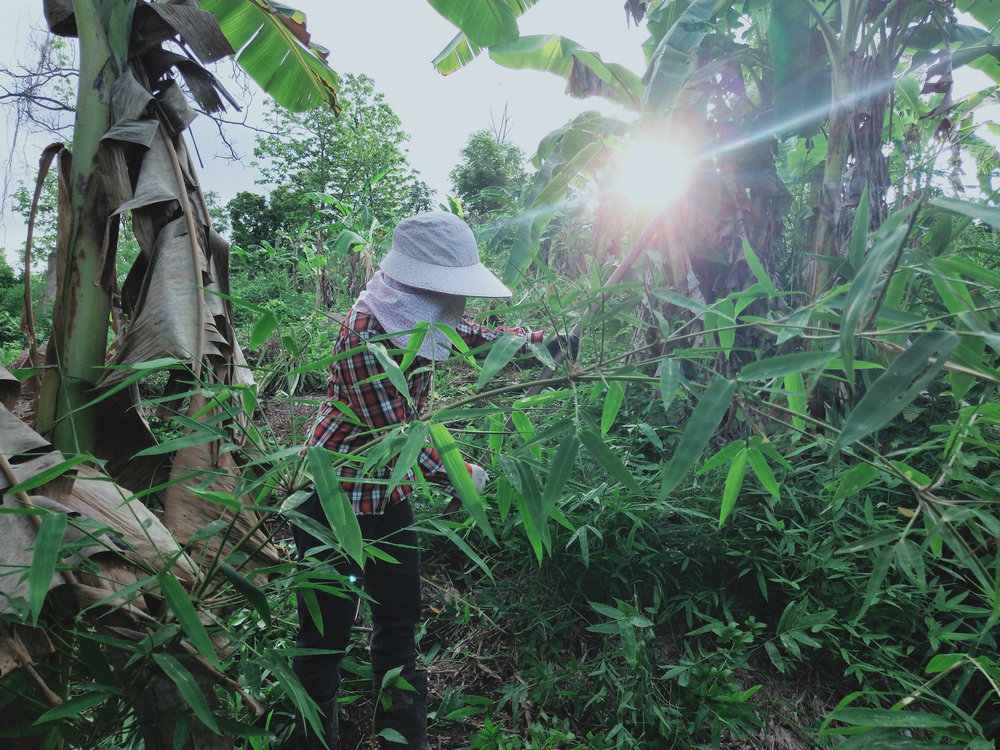 Over the past month, the five of us have been participating in collective labor on the mountain every morning, focusing on large-scale weed clearing. The rainy season is truly a time when all sorts of plants become incredibly active, and their rapid growth is a testament to how well they’ve been nourished. The vibrant greenery everywhere is a beautiful sight, but it also brings challenges. This mountain, while not too large, presents a considerable workload for just five people. The mountain is covered with various small shrubs, which are difficult to uproot completely. Using a weed cutter is one of the faster methods, but the speed at which the grass regrows is astonishing.