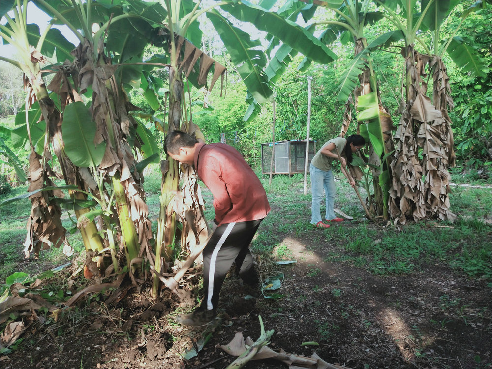 However, after a month of battling the weeds, we’ve seen some significant progress. In areas where weeds once dominated, we’ve gradually replaced them with avocado trees, mango trees, and banana trees. In addition to the existing banana trees, pineapples, and papayas, which were already planted and widely transplanted, we’ve also cultivated dozens of jackfruit trees, along with a few lychee, orange, mulberry, and longan trees.