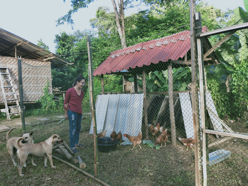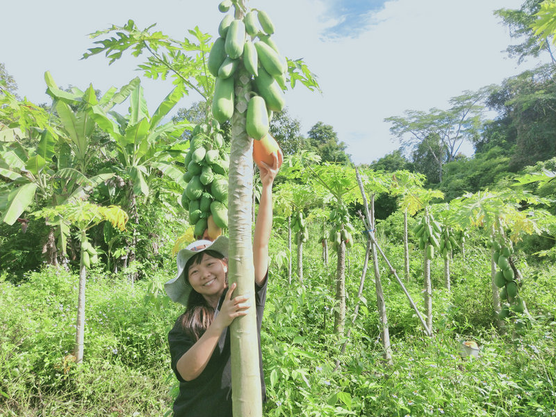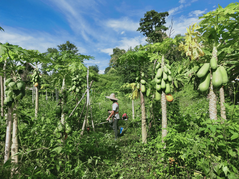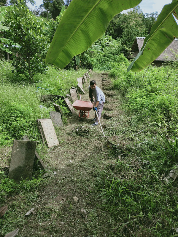 The first subdivision is a paradise for banana trees; they are still producing more bananas than we can eat. There’s also an abundance of papayas, surprisingly thriving passion fruit, a few eggplants and chili plants, and many flowers that are growing well. However, other vegetables like bell peppers, corn, bitter melon, sweet potatoes, beans, tomatoes, green onions, okra, water spinach, and strawberries have long been overtaken by the wild grass, their presence completely erased by the harsh realities of nature. The hardier, woody plants and trees have fared much better, becoming self-sustaining and requiring less management.