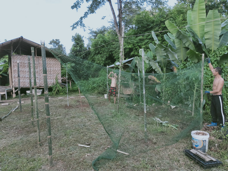 The first subdivision has its advantages, especially the loose, fertile soil, which makes it easier to grow various vegetables. Following the advice of a senior monk, we brought back 10 chickens from the second subdivision. With the seamless cooperation between Huiyi and Guangge, we quickly built a simple yet charming chicken coop. After a few days of intensive grass-cutting and cleaning, the surroundings now look much more comfortable and tidy. The next task is to plant some vegetables and continue with more detailed beautification work.