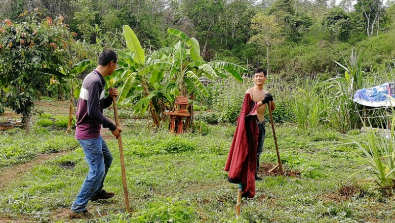 What a display of skill and creativity! Zhaoming, Huiyi, and others have built a house using wood, bamboo, leaves, thatch, and other natural materials. The result truly resembles a fairy-tale dwelling. In a tropical region like ours, this type of house is perfectly suited to the environment—cool and comfortable, elevated over a foot off the ground to prevent dampness. They even crafted a bed out of bamboo, which looks sturdy enough. However, whether it can withstand hosting the "Olympics" on it remains to be seen—it’s up to our brothers and sisters at the Thailand Branch to put it to the test!