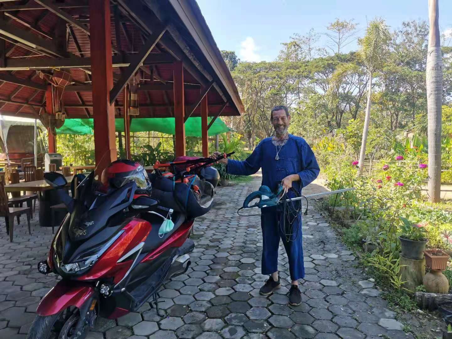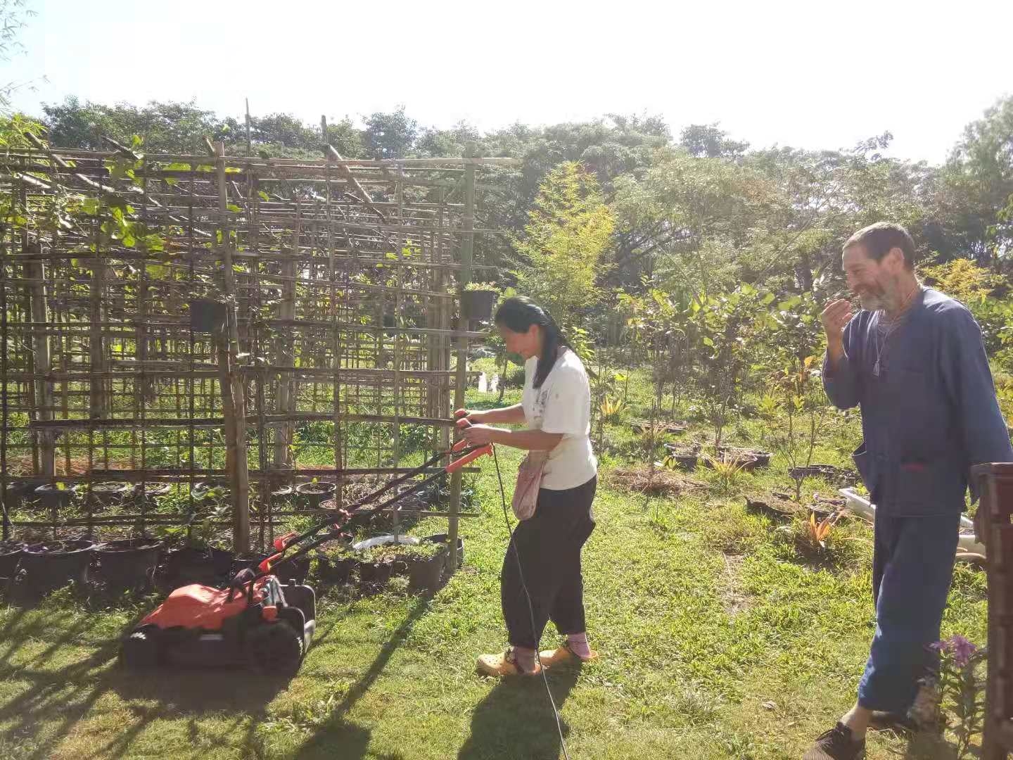 Our French friend Philips needs to take care of the plants in his own garden, so he has very little time to help us with the work in the second branch lately. He brought over his animal-shaped hedge trimmers and lawn mowers for us to use, and bought us more than 40 bags of vegetable seeds. Since we were here last year, Philips has always been helping us, donating washing machine, tools, seeds etc., and sometimes sharing his favorite food with us.Every time he comes to us,he tells us,if we need anything, just tell him,he would be very glad to help.We are so touched and grateful for such warm help and selfless dedication.Before he left, we gave him a bag of compost and four strawberry seedlings. Yangle told him that if his plants need more compost, just come here to pick up, and we will keep making compost all the time.