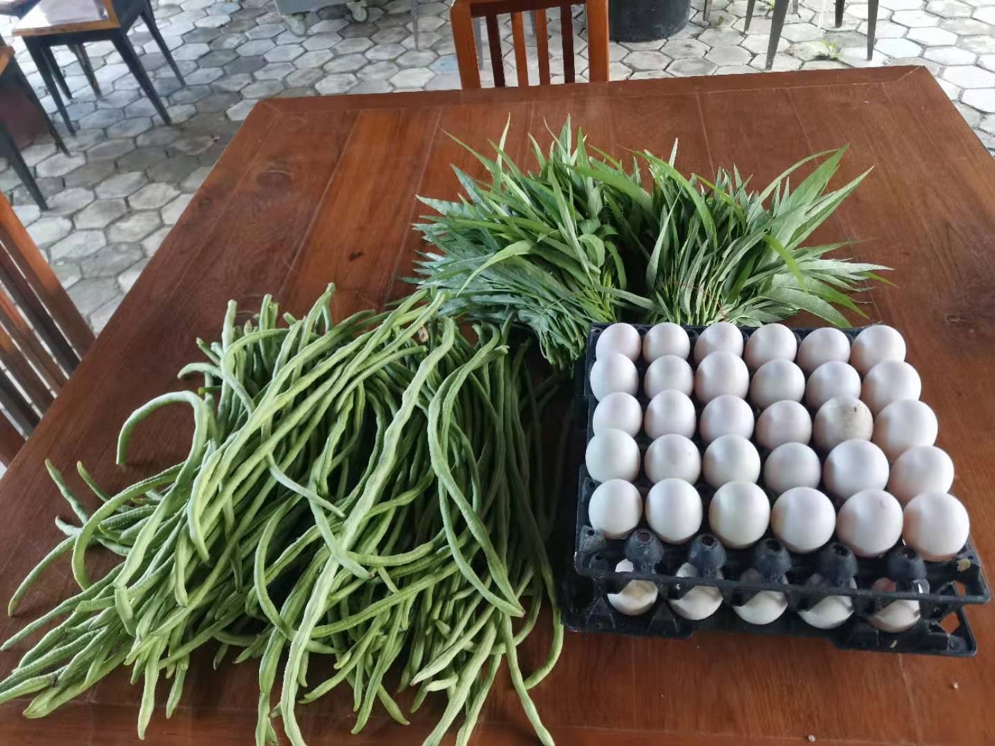 Daddy Chicken hopes to let the chicken and duck babies eat more natural foods from the field. So the feed from market was halved and replaced with corn, leftover rice, water spinach, bananas, etc. And the ducks still give us 19 eggs everyday day. The Abbot has always cared for us like a father, so every time we enshrine the vegetables and eggs to him, we always feels happy and a sense of accomplishment !