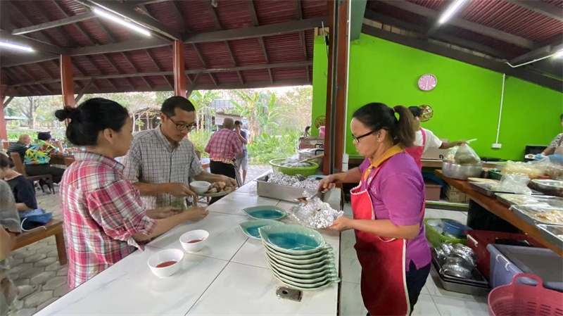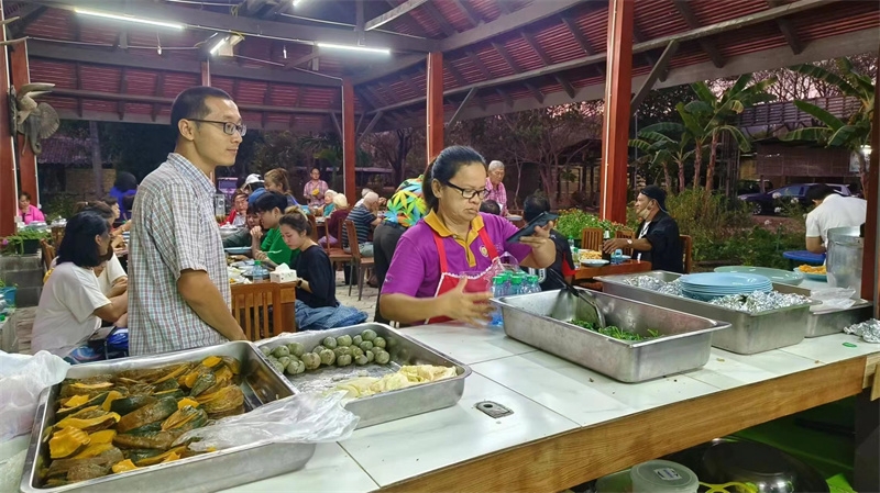 On the 23rd, the Abbot of temple were set to host 50 guests from Bangkok at the garden Restaurant for dinner. On the evening of the banquet, the temple chefs transported the prepared dishes to the garden. Brothers and sisters assisted the chefs in serving the guests, handling tasks such as setting up utensils, plating side dishes, serving water and food, and taking care of dishwashing and cleaning. The collaborative effort lasted nearly 5 hours, with everyone exuding joy and warmth.