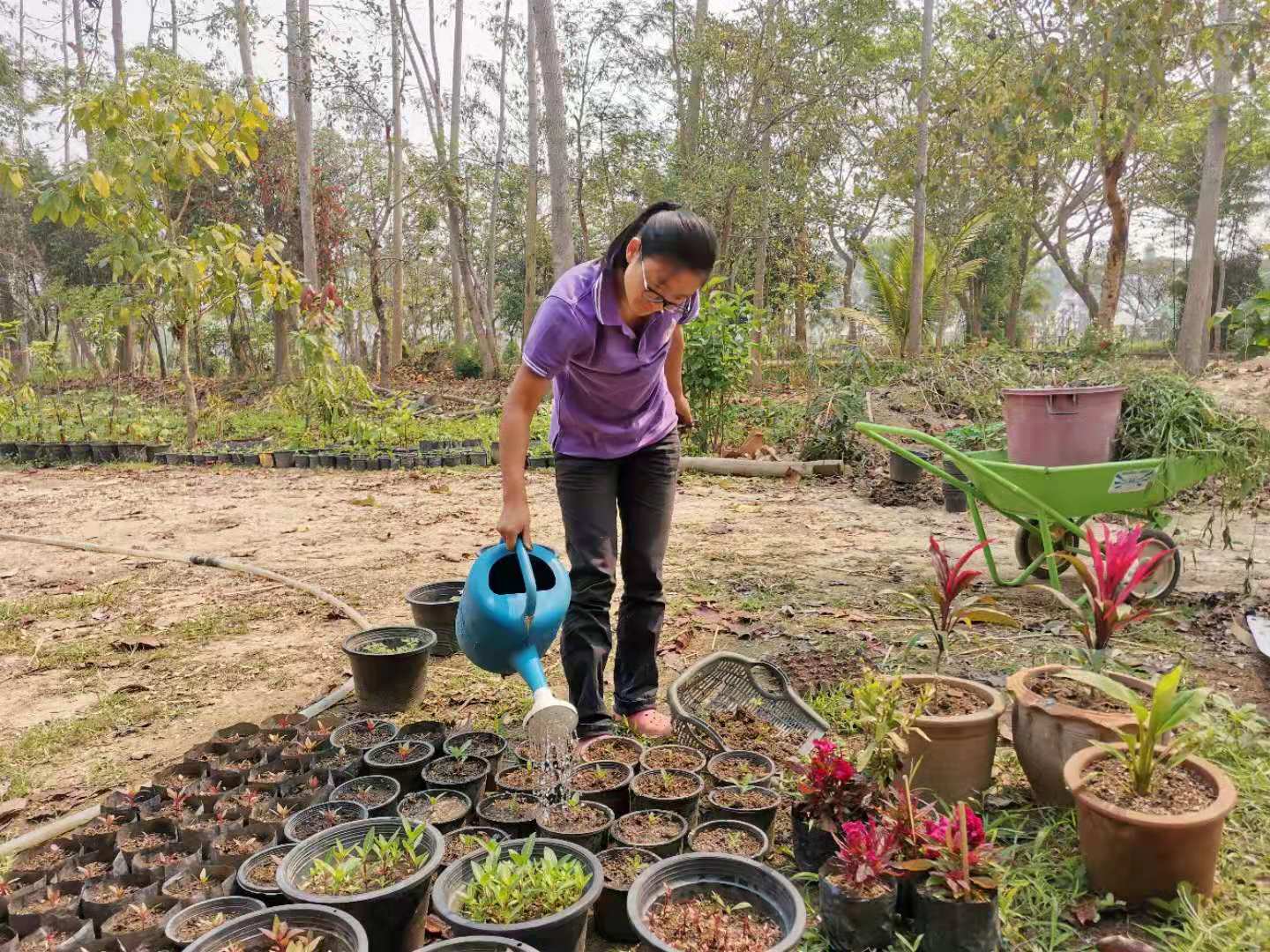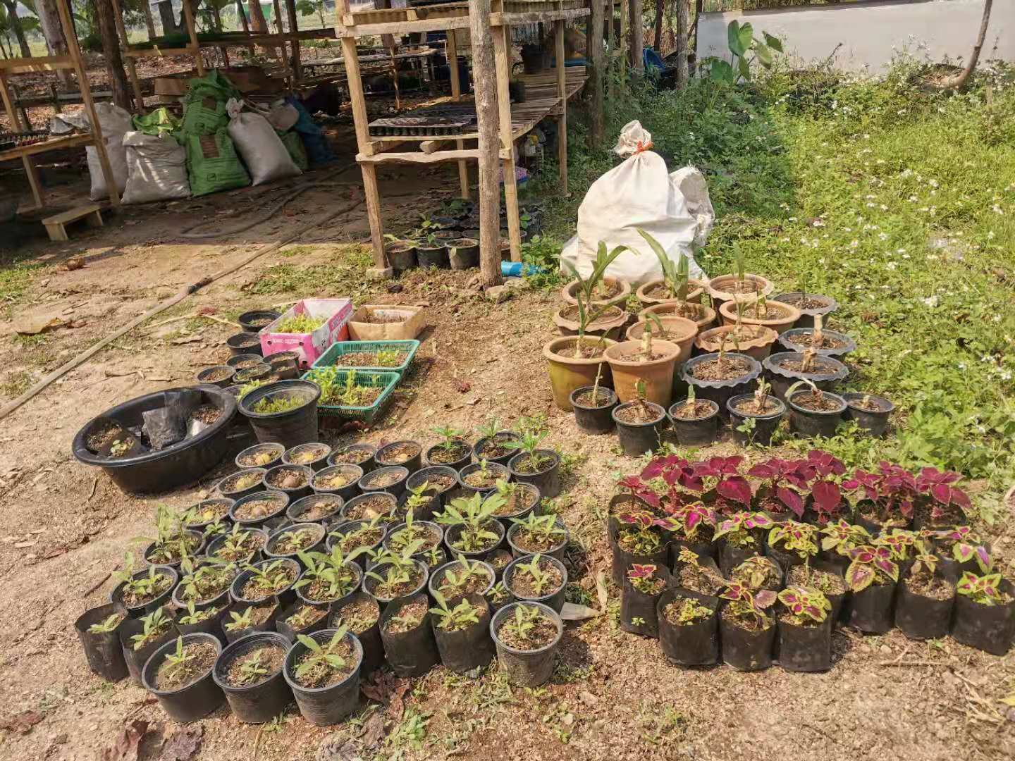 Recently, our main work is still planting flowers and trees to beautify the environment of the ecological garden. Because Huiguang brother went back to the the first branch to repair the water pump and build garage. Yang Le brother, the Chinese-speaking brother, and a young monk are digging holes to plant landscape trees and banana trees. Qianzi works with a Thai sister Lulu. She is kind and lovely, hardworking and simple.While working, she teaches Qianzi Thai. She likes to joke ,working with her,we laugh a lot. Excepting collective work with everyone,Yangle and Qianzi also find work they are interested in. Yangle likes composting,growing melons and planting fruit trees. Qianzi likes to grow flowers. We plan to gradually turn this place into a paradise full of melons, fruits and flowers.