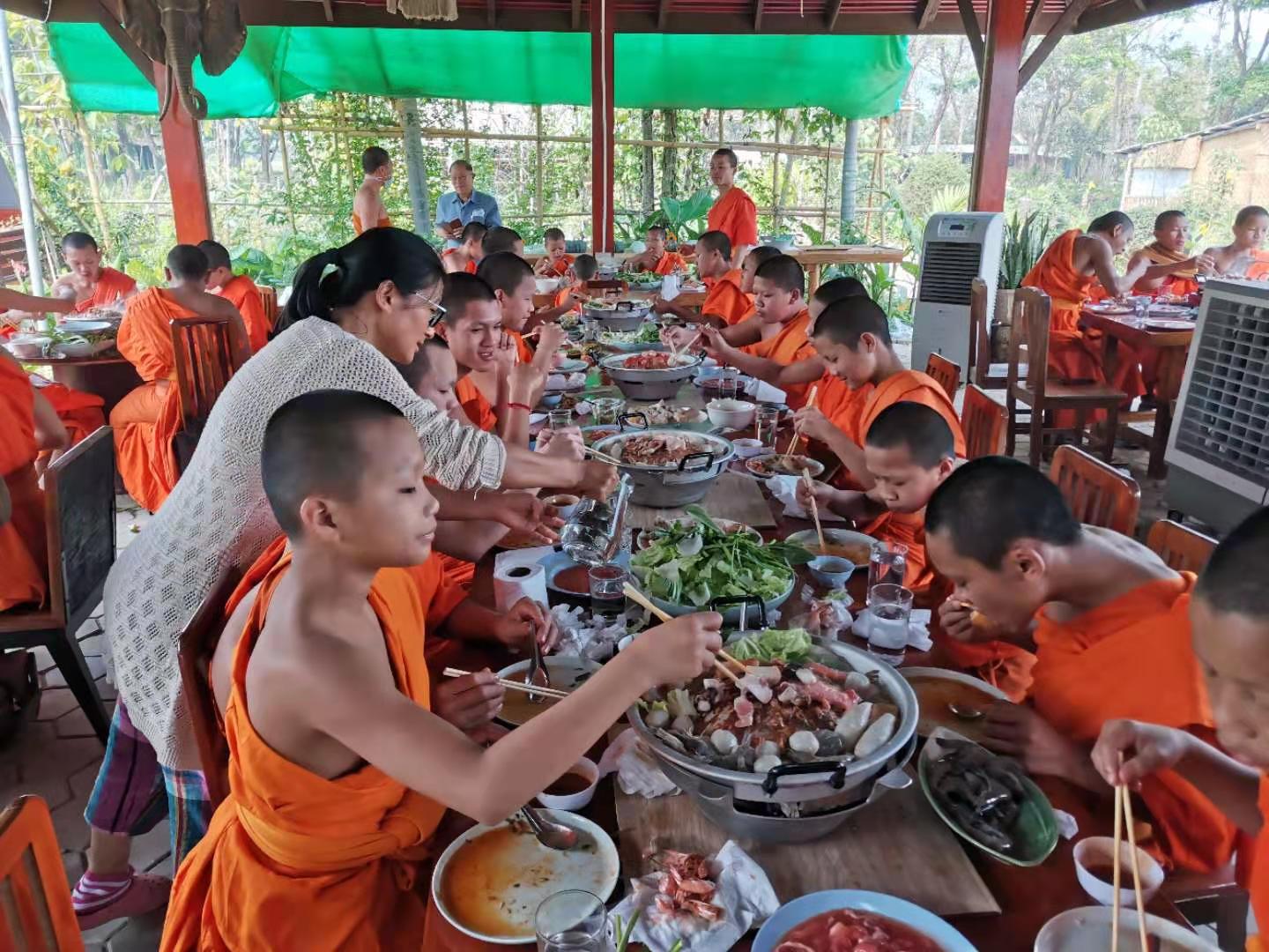 The people here, workers, neighbors, and the master monk all take good care of us, making us feel the warmth of home here. We also show our excellent quality here, hoping to bring joy and auspiciousness to this lovely people and place.