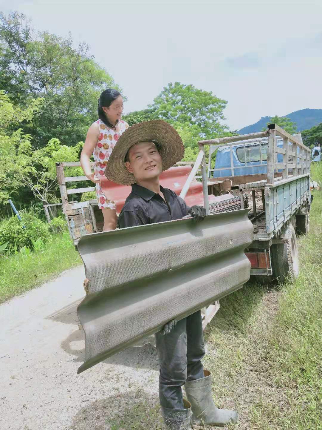 When we didn't help on the construction site , we went to pick up cow dung, collect grass,make compost, move vegetable seedlings to the fields. The soil here is clay, Yang Le and Qian Zi have discussed many times about how to improve clay, and we also learned an method from our friend Gei, an organic planting expert.Yang Le decided to use the method taught by Gei to shovel the clay and mix well with a large amount of organic matter(leaves and rice skins) on the small vegetable plot in front of the kitchen, and then cover the field with the straw, spray liquid fertilizer and em liquid into the soil. After seven days,we can plant vegetables on the soil and let the soil soften slowly. For the large vegetable plot behind the kitchen, Yang Le planed to dig out the clay at the place where we are going to plant seedlings and replace the original clay with the mixed soft soil.