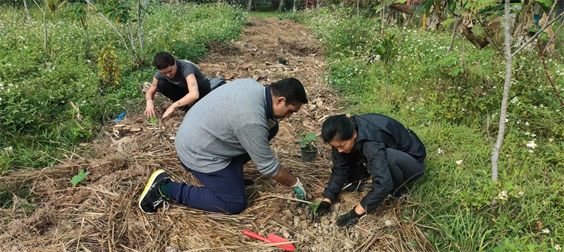 During this blossoming season, the Thai Home welcomes Lanka brother. Quiet and gentle, Lanka exudes a simple and humble demeanor, with a childlike innocence reflected in his warm smile. After five months of online communication with community members, Lanka became the first international member to join our life here. In these days, Lanka has joined in activities like pumpkin planting, leaf collection, and assisting in constructing a framework for a composting toilet. His diligent and earnest efforts have earned him recognition and affection from everyone.