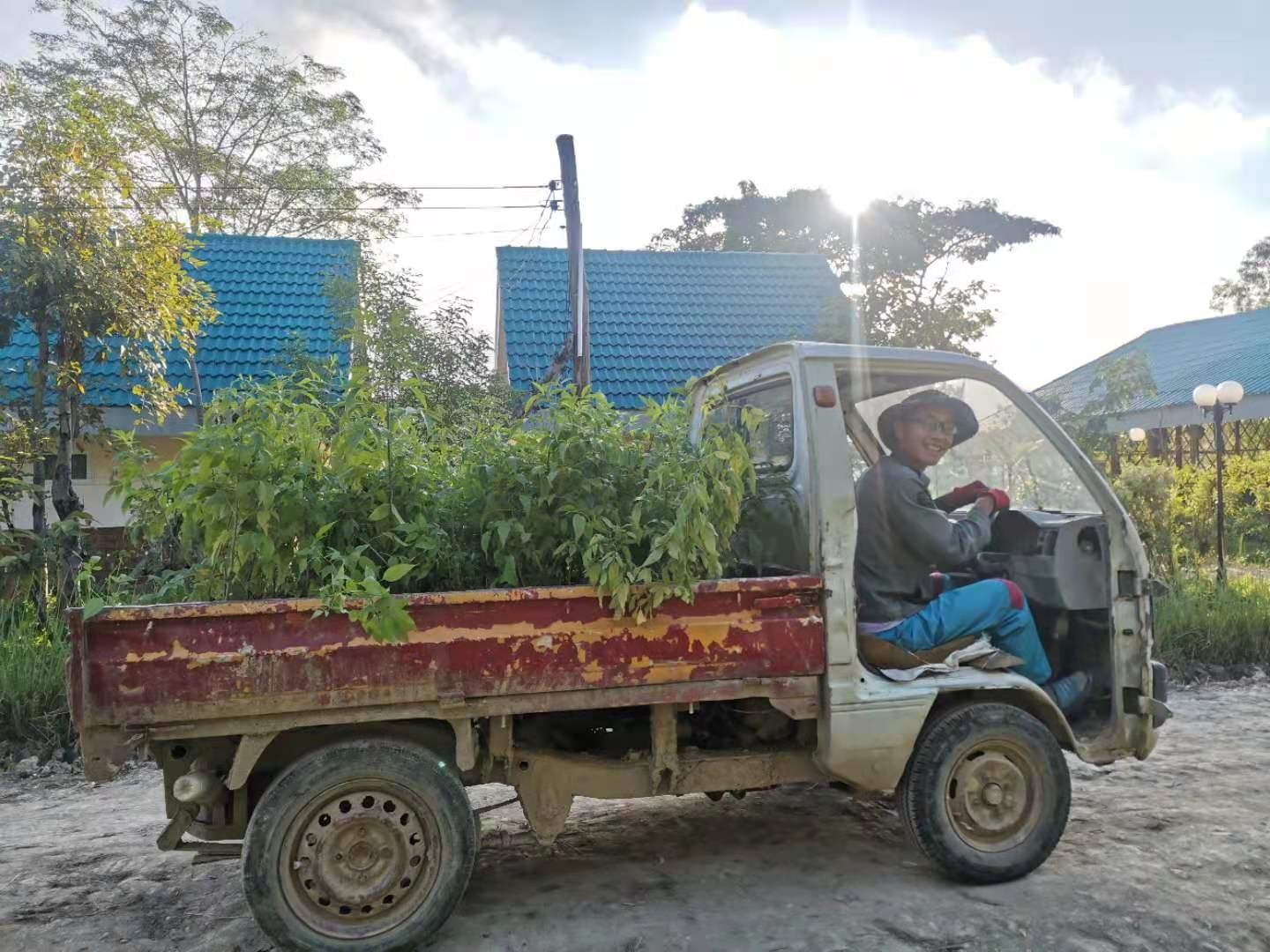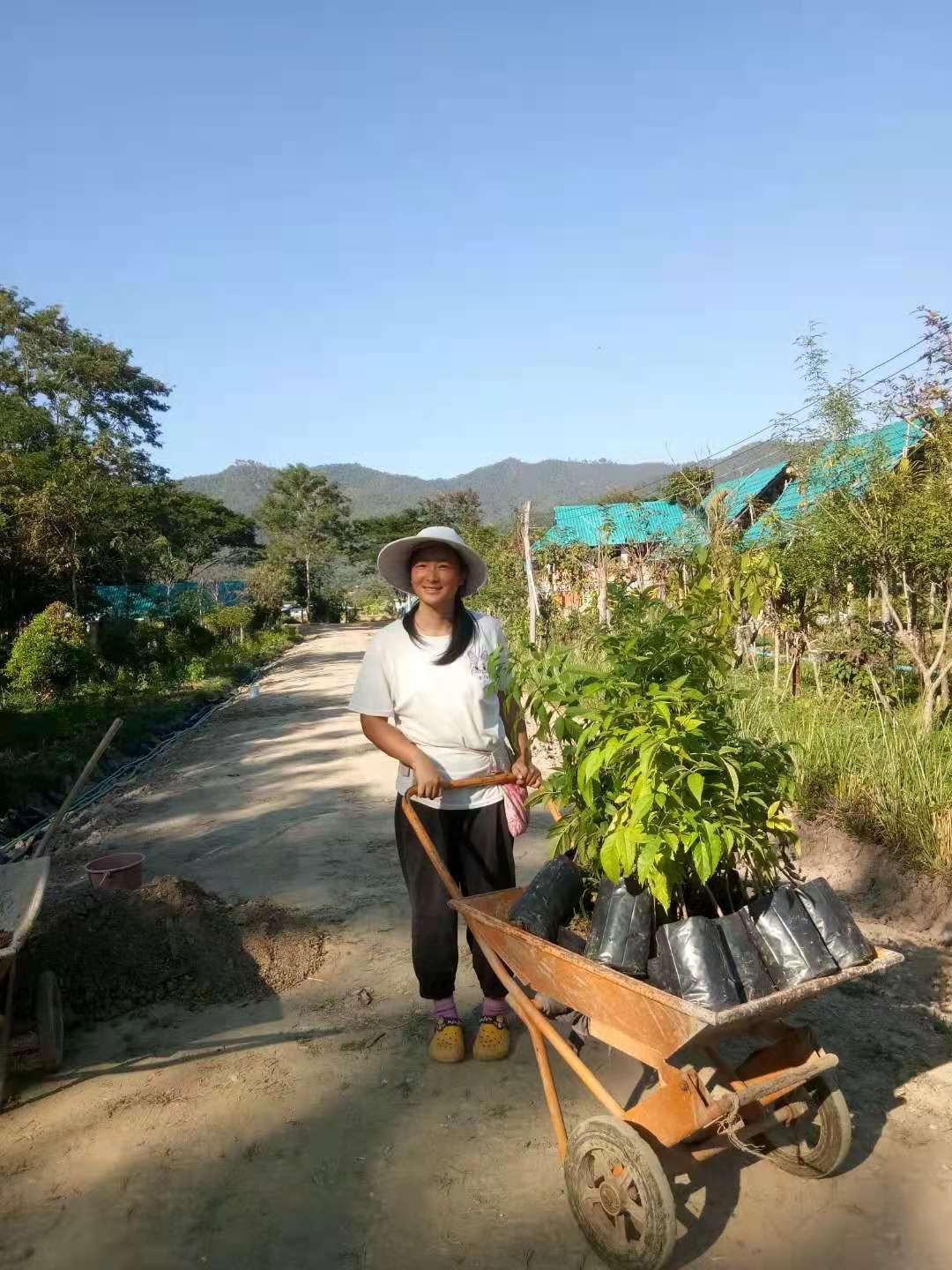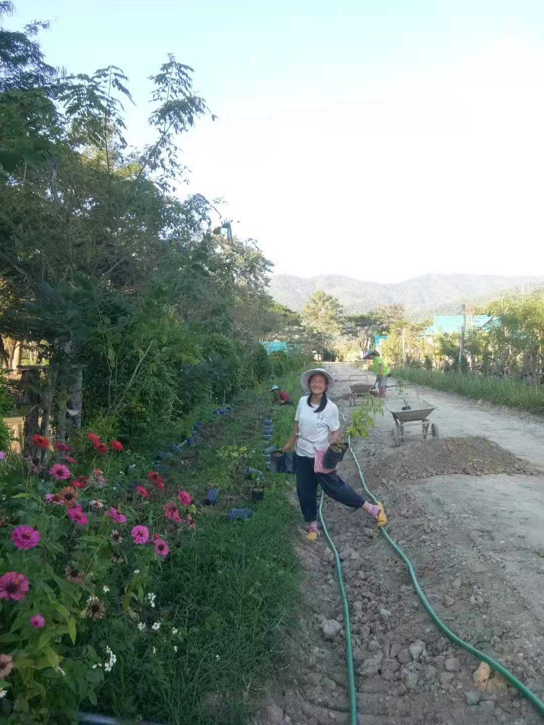 We have built 13 communities in China, and each community has a clean,tidy and beautiful environment. Cleanliness is one of the great virtues of our community. The beautiful and orderly living environment makes people feel comfortable, full of energy and relaxed . Although the nursery room here has been used, I have not taken time to clean it thoroughly. In order to make the nursery room a part of our beautiful homeland, with the help of Yangle, we began to make a reorganization in the nursery room. Clean up the surrounding broken stone benches and bricks, as well as weeds and garbage, and transport away the disorderly tires and the soil inside, and planed to make the nursery a beautiful place for friends to visit.