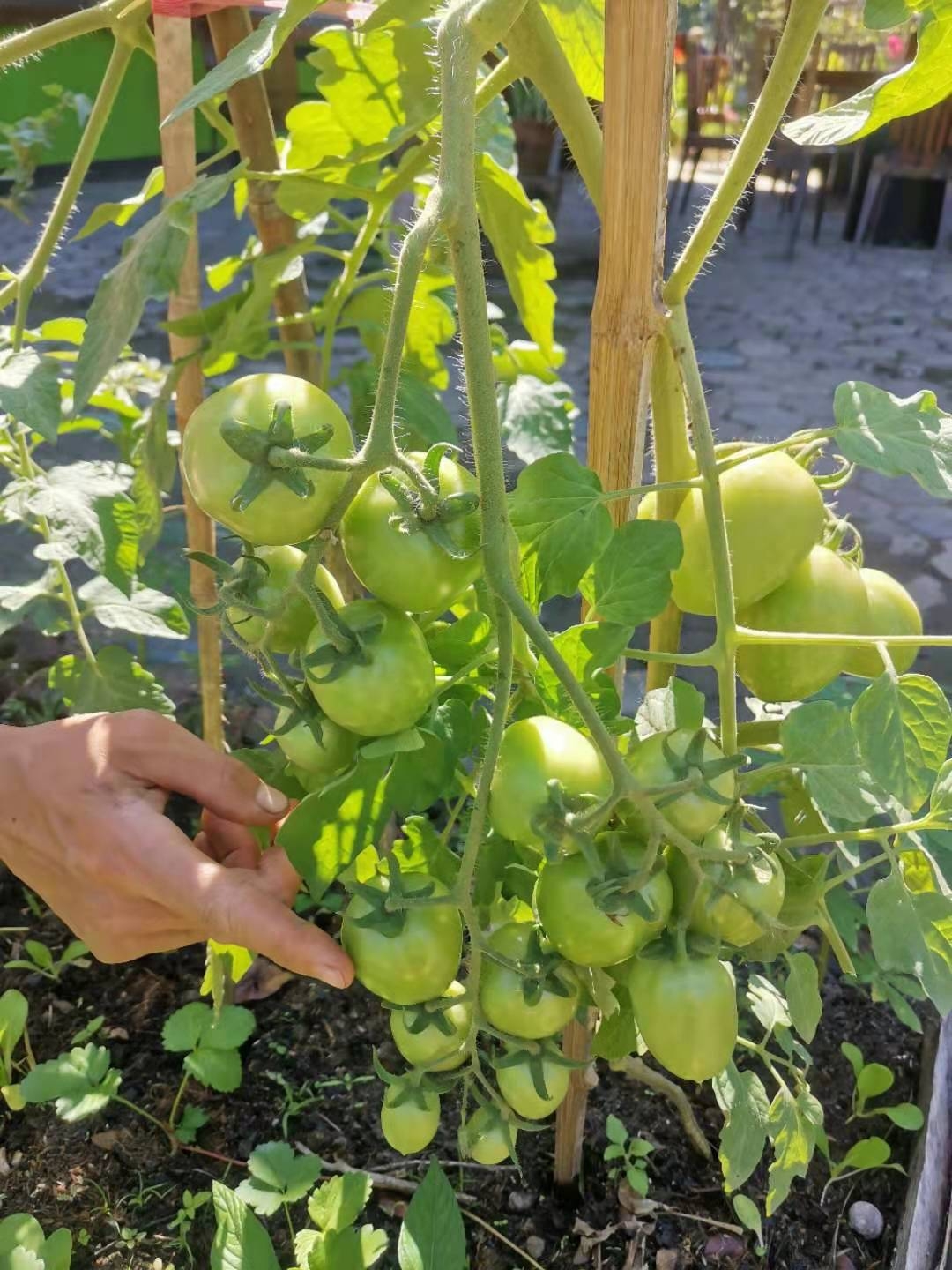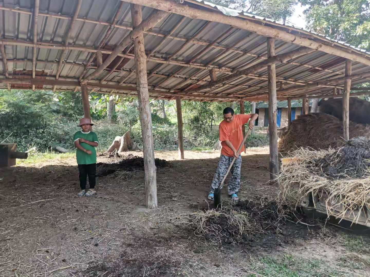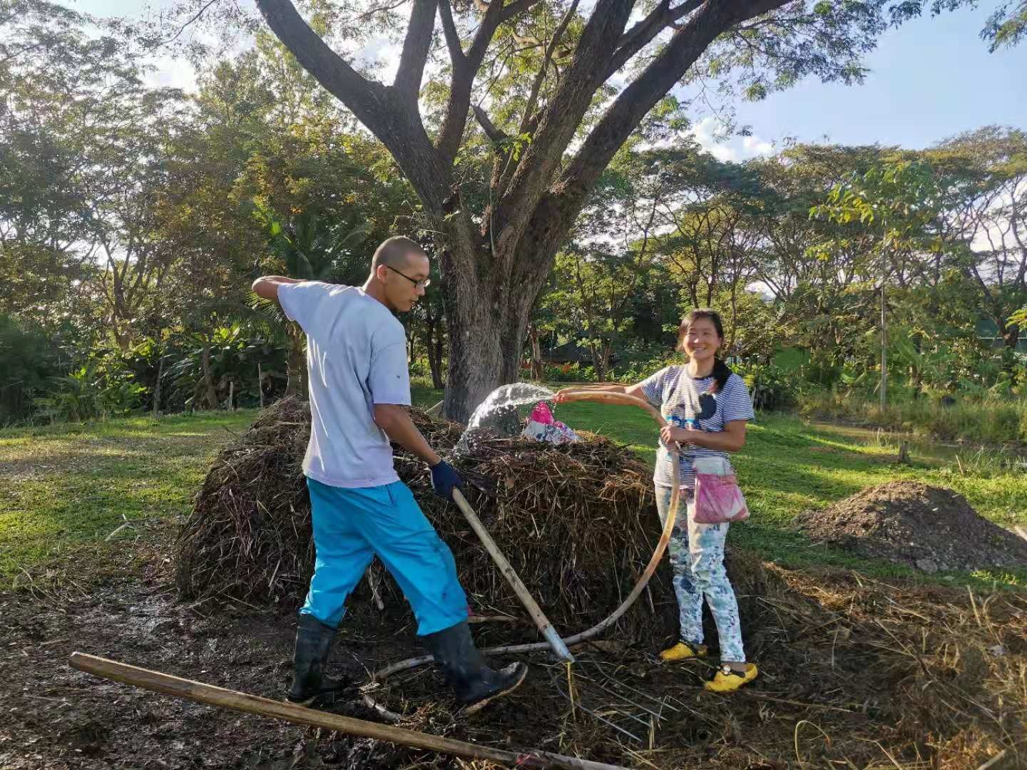 Our French friend Philips needs to take care of the plants in his own garden, so he has very little time to help us with the work in the second branch lately. He brought over his animal-shaped hedge trimmers and lawn mowers for us to use, and bought us more than 40 bags of vegetable seeds. Since we were here last year, Philips has always been helping us, donating washing machine, tools, seeds etc., and sometimes sharing his favorite food with us.Every time he comes to us,he tells us,if we need anything, just tell him,he would be very glad to help.We are so touched and grateful for such warm help and selfless dedication.Before he left, we gave him a bag of compost and four strawberry seedlings. Yangle told him that if his plants need more compost, just come here to pick up, and we will keep making compost all the time.