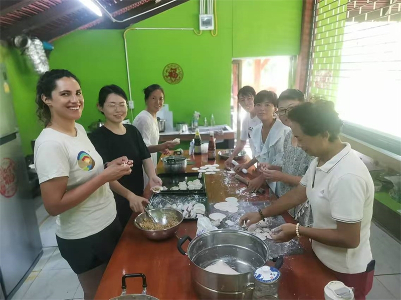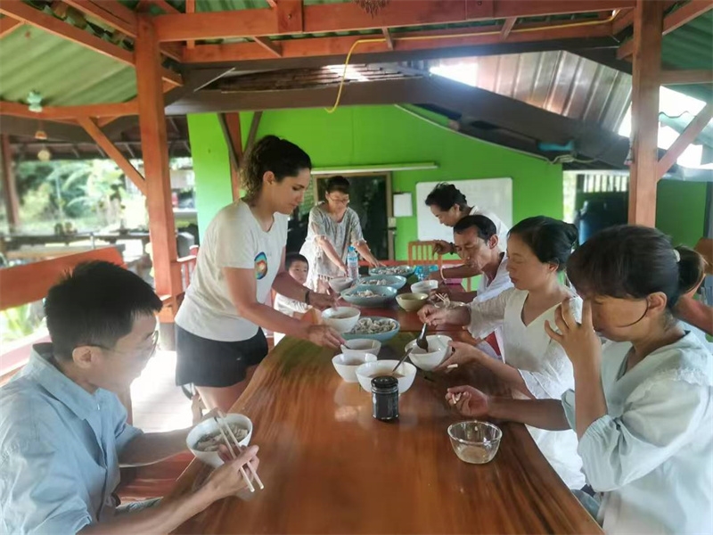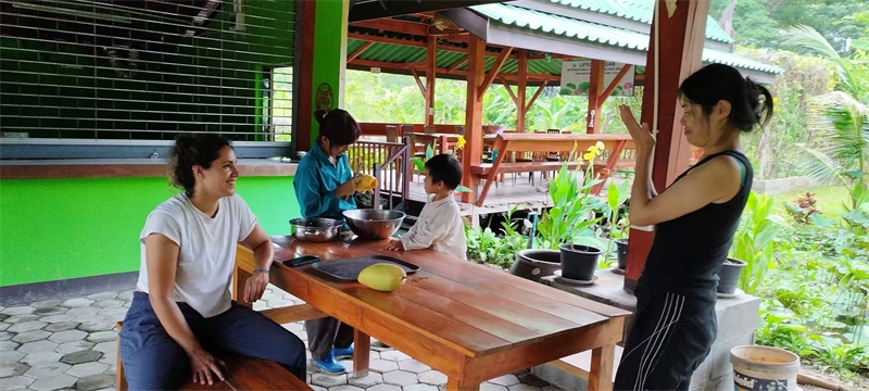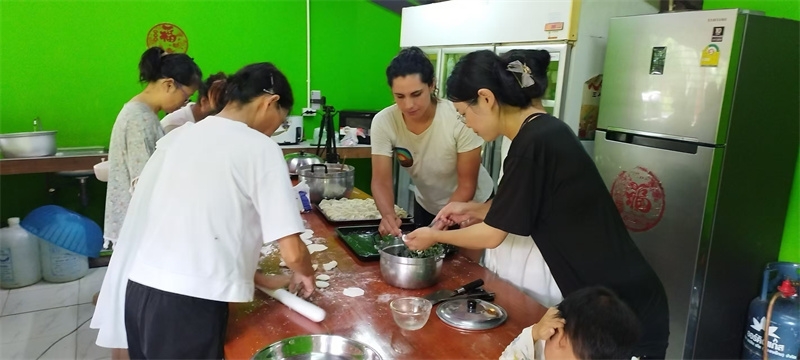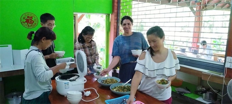 Gabi experienced six days of home life in Thailand. In the mornings, she worked in the fields with Yang Le and Jiao Er, and in the afternoons, she exchanged ideas about the Zen academy and watched home videos with Qianzi. She also learned Tai Chi from Yi Xian. During group activities, she made dumplings, baked cakes, played cards, and games with everyone. She even taught us the passionate South American dance, Salsa. The close-to-nature work and the rich and colorful entertainment and cultural activities made her feel the fullness, joy, harmony, and beauty of home life. She told me it was her first experience of community life, and it brought her unexpected happiness and joy! Everyone also liked this hardworking, polite, cheerful, and energetic girl. We hugged and blessed each other when we parted.