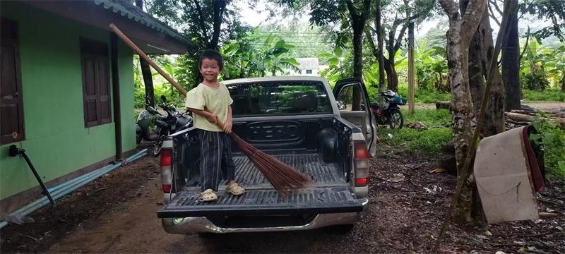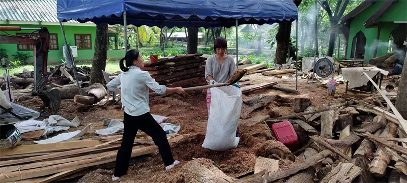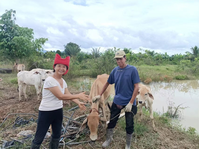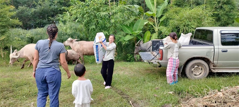 With childlike enthusiasm, two children, Jie Jing and Yu Lin, followed the distant sounds of cows to discover a cattle farm near the mango grove. Using translation software, the residents of the mango grove had a friendly and pleasant conversation with the farm owner. They mutually visited each other’s farms and orchards, sharing knowledge about planting and their harvests. Jie Jing and Yu Lin confidently went to visit the orchard of the farm owner located in Fang, while the farm owner’s friend came to Gongde Garden to meet us. During a conversation with this kind sister, Yang Le asked about and learned about the possibility of raising sheep in Thailand.