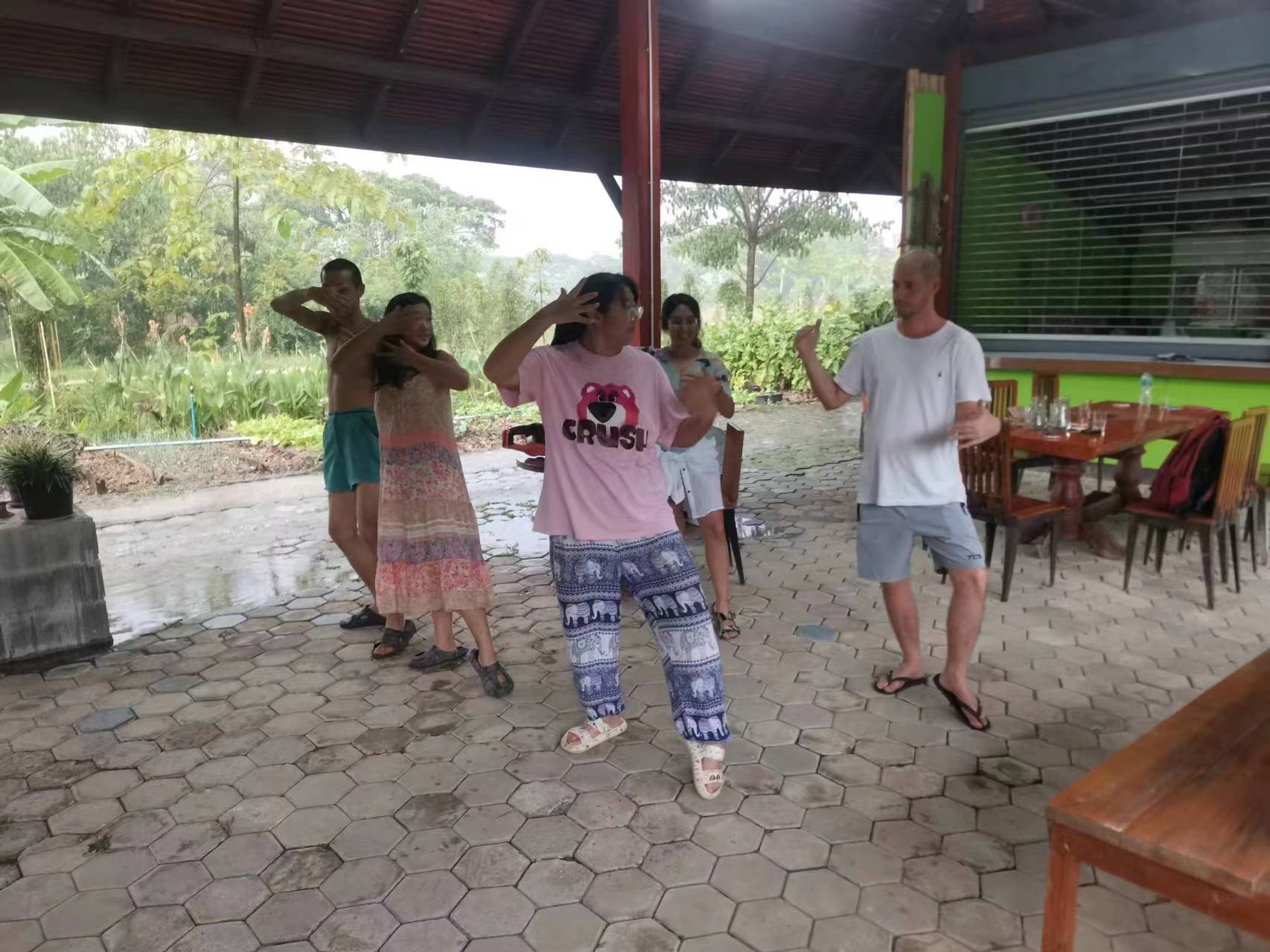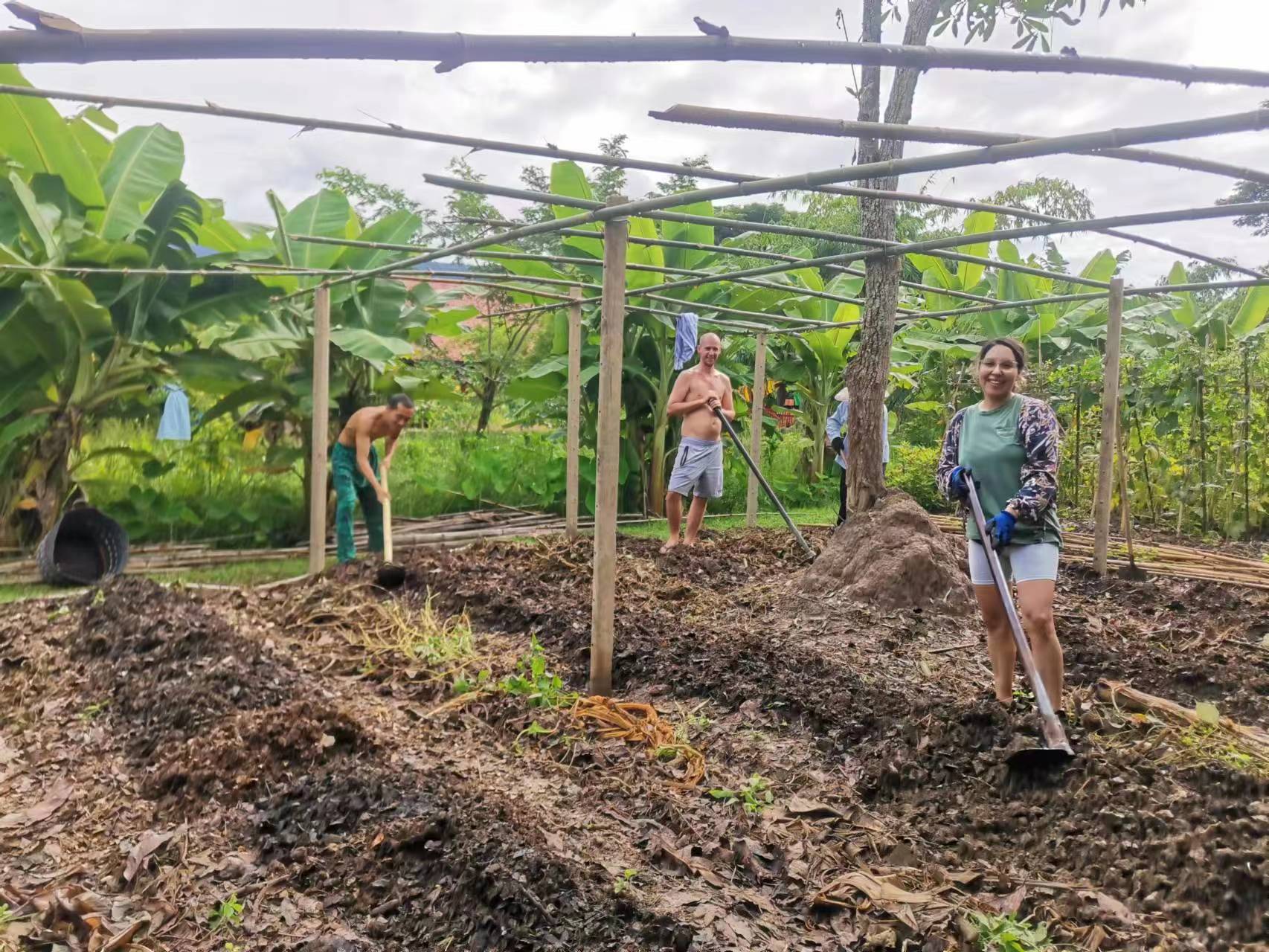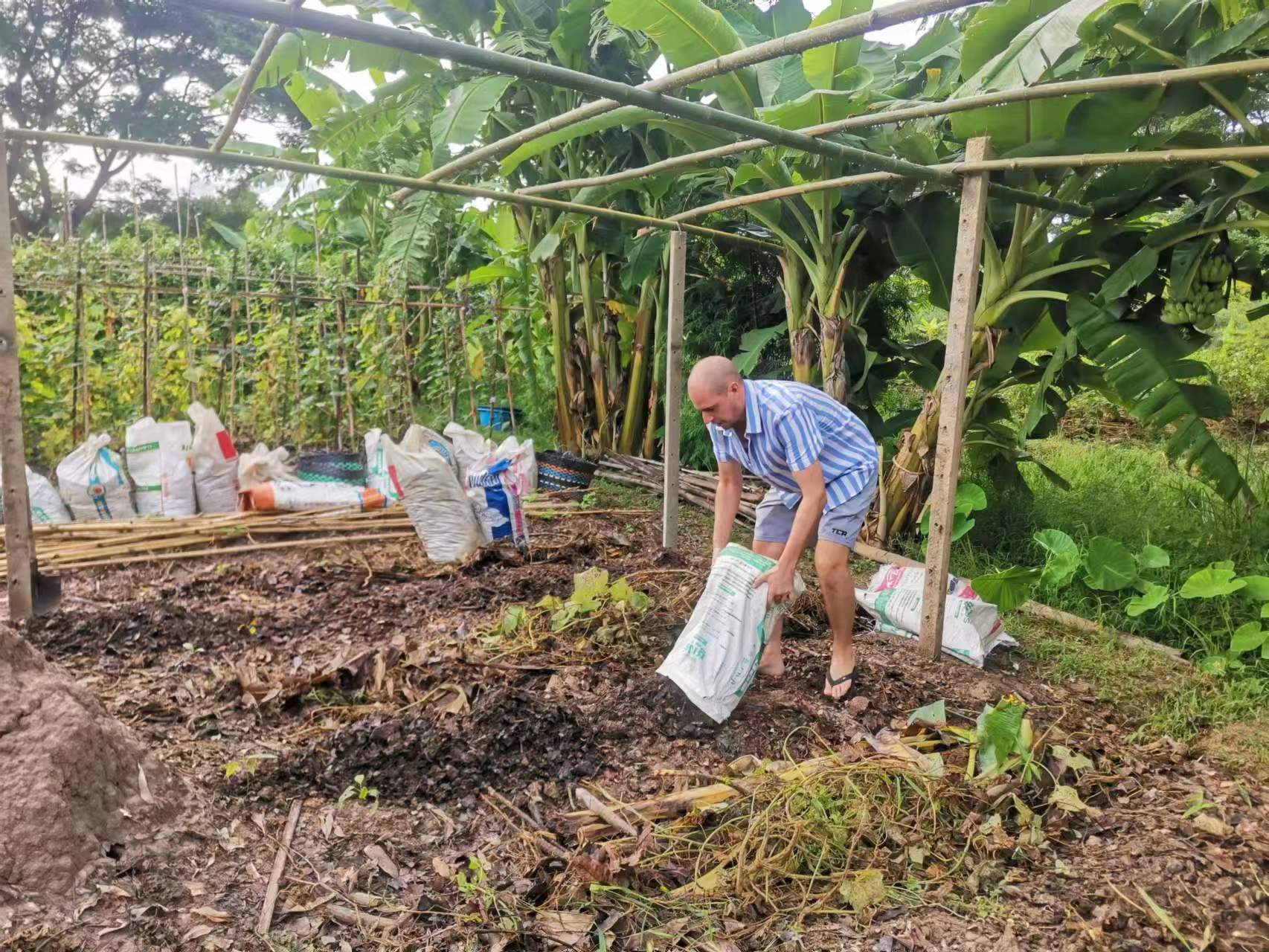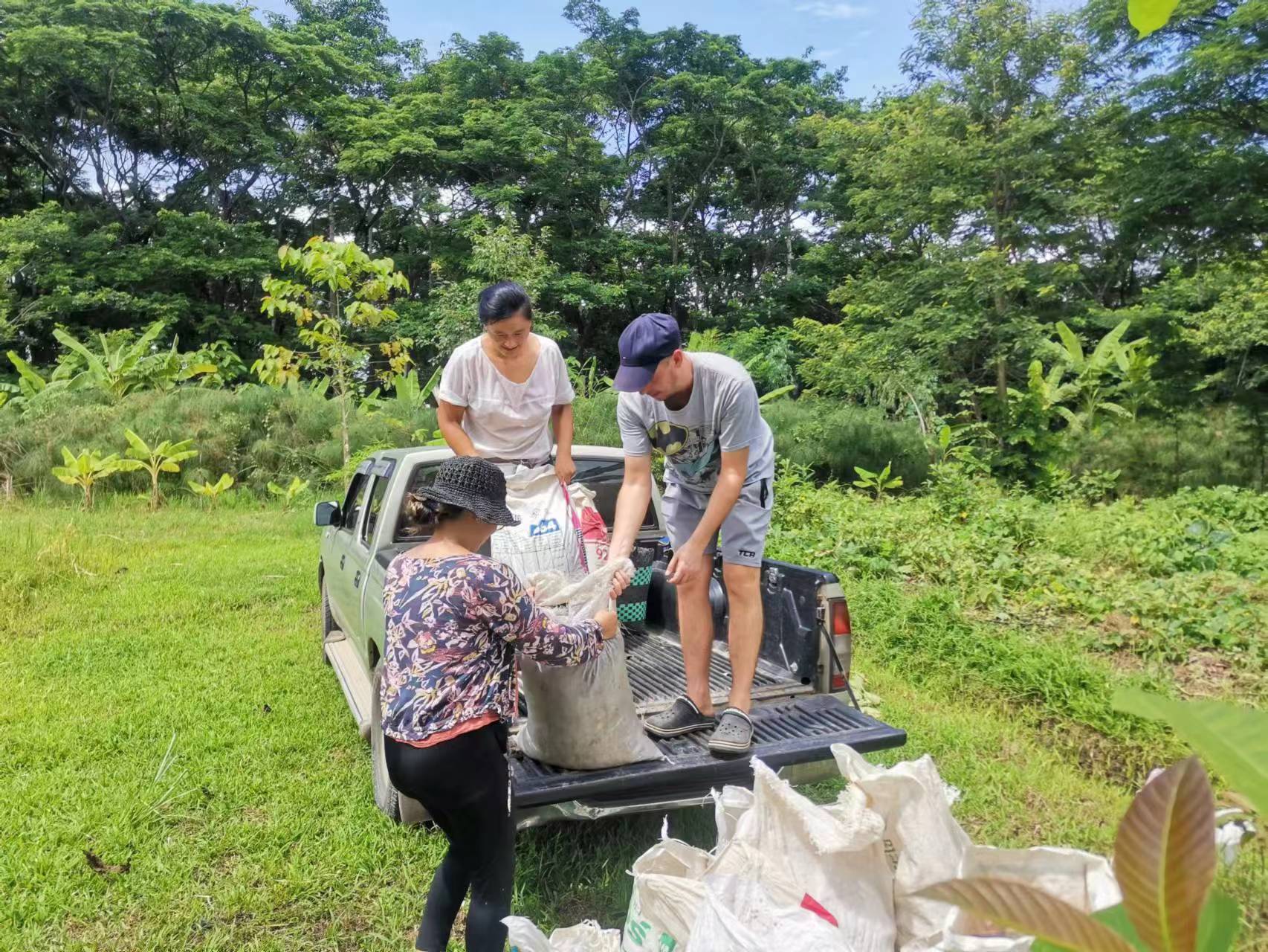 During these days, Maria and Rowan joined us in gathering grass, weeding, carrying fertilizer, picking mangoes, improving the soil, and planting pineapples,they are diligent and fearless of heat and dirt,help us a lot with the gardening work. Rowan, a gentle and sensitive British boy who had been hurt in a past relationship, appreciated free love in the community, hoped to become a member after familiarizing himself with the 800 Values for new era human beings. Maria, a kind and sweet Chilean girl who worked as a preschool teacher, had a loving and caring personality. She believed in Christ, the existence of souls and heaven. She cooked delicious Mexican chicken rolls and taught us passionate South American dances. During their free time, we took them out for short trips and swimming. After a week of experience, they both feel peaceful and satisfied here and asked if they could extend their stay for another week, since we all enjoy time spent with them and agree happily they stay for another week.